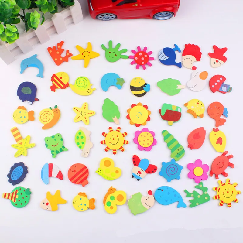 12 шт.лот, деревянные Мультяшные магнитные наклейки на холодильник, животные, Мультяшные цветные детские игрушки, детские развивающие игрушки, подарки