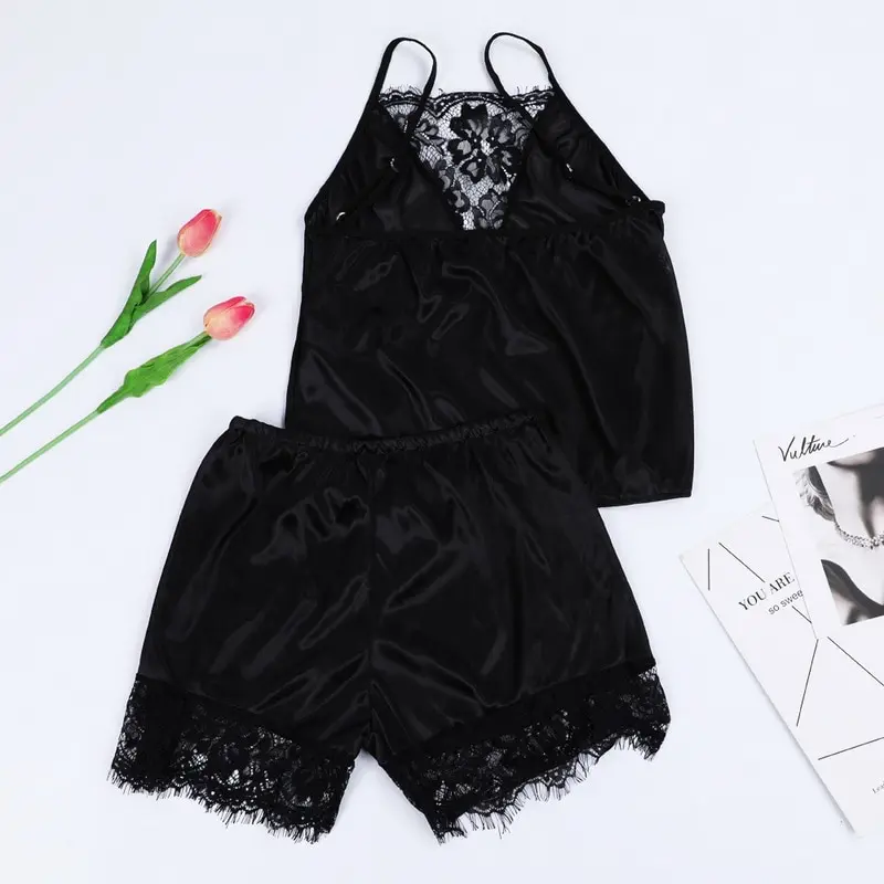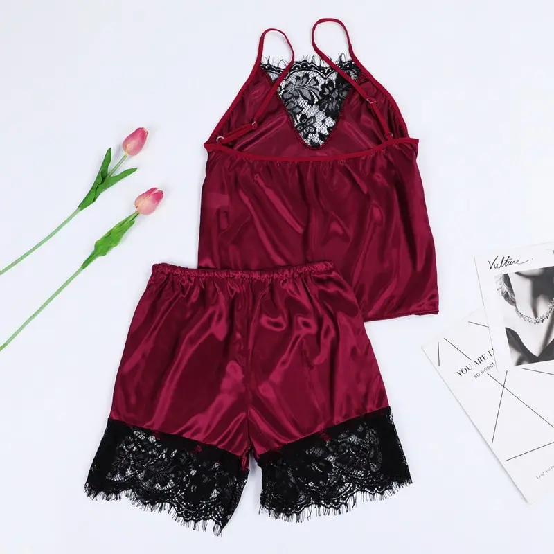 Сексуальные женские кружевные пижамные комплекты, 2020, без рукавов, на бретельках, пижамы, 2 шт., с отделкой, Атласный топ на бретельках, ночное белье, ночные рубашки, нижнее белье, пижама MujerПримечания:1. Пожалуйста, учитывайте разницу в 1-3 мм из-за ручного измерения, спасибо за понимание!2. Из-за разницы между различными мониторами, пожалуйста, поймите, что изображение может не отражать фактический цвет товара.