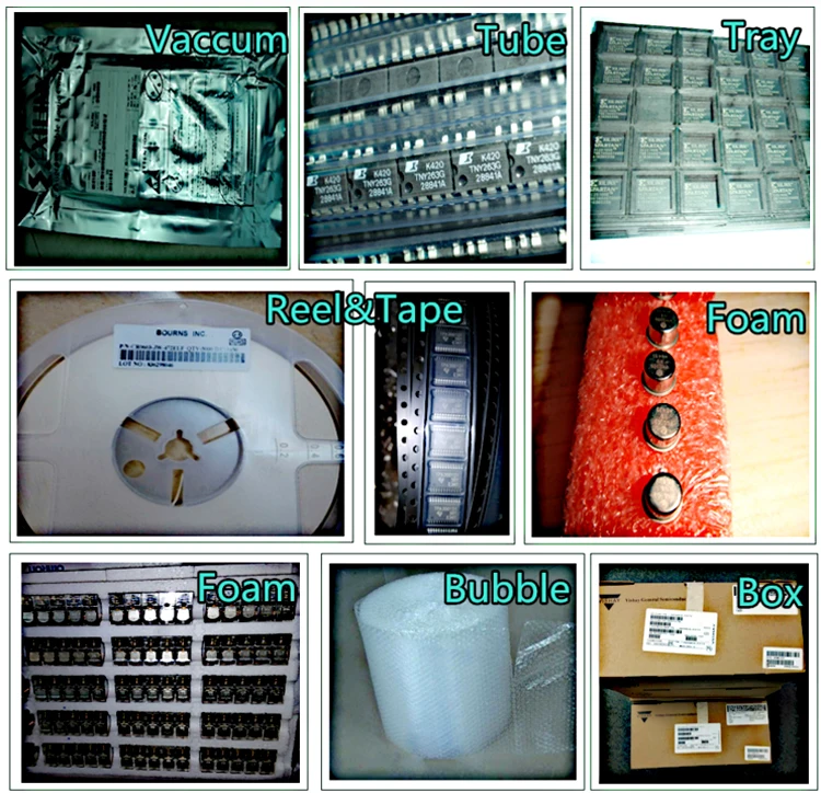 1. Оригинальная Заводская запечатанная упаковка со стандартными типами:Трубка, лоток, лента и катушка, коробка, упаковка мешка. Пожалуйста, сообщите нам, если у вас есть особые требования.
