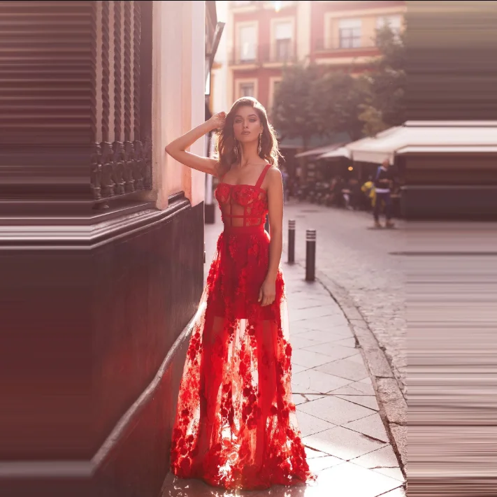 2021 сексуальные красные платья для выпускного вечера, прозрачные кружевные длинные платья с 3D цветочной аппликацией и квадратным вырезом для вечеринки