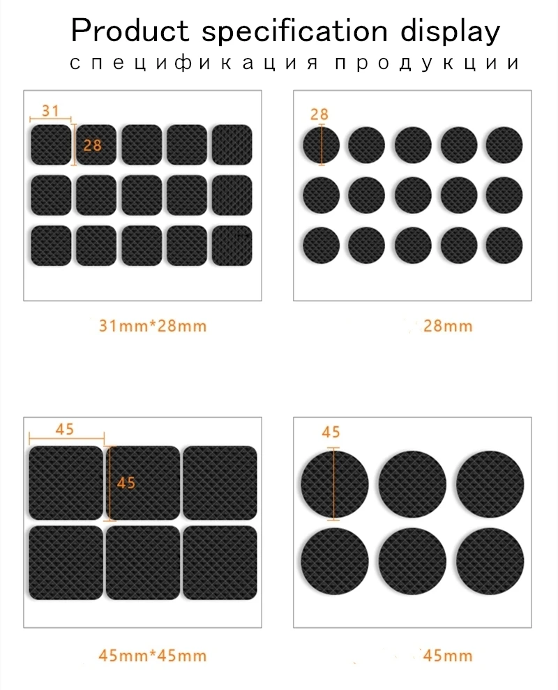 Материал: ЭВАЦвет: черныйРазмер: как показано на картинкеКоличество: (1 лист) 1 шт., 2 шт., 6 шт., 15 шт., 24 шт.Посылка в комплекте1/2/6/15/24 шт сгущать противоскользящая ножка для мебели подушечки ОсобенностиЕсть очевидные линии противоскользящего коврика с противоскользящим покрытием, может очень хорошо помочь вам зафиксировать столы и стулья, предотвратить свободное долото. Не только может играть хороший Противоскользящий эффект, утолщенный, но и защищает ваш пол!