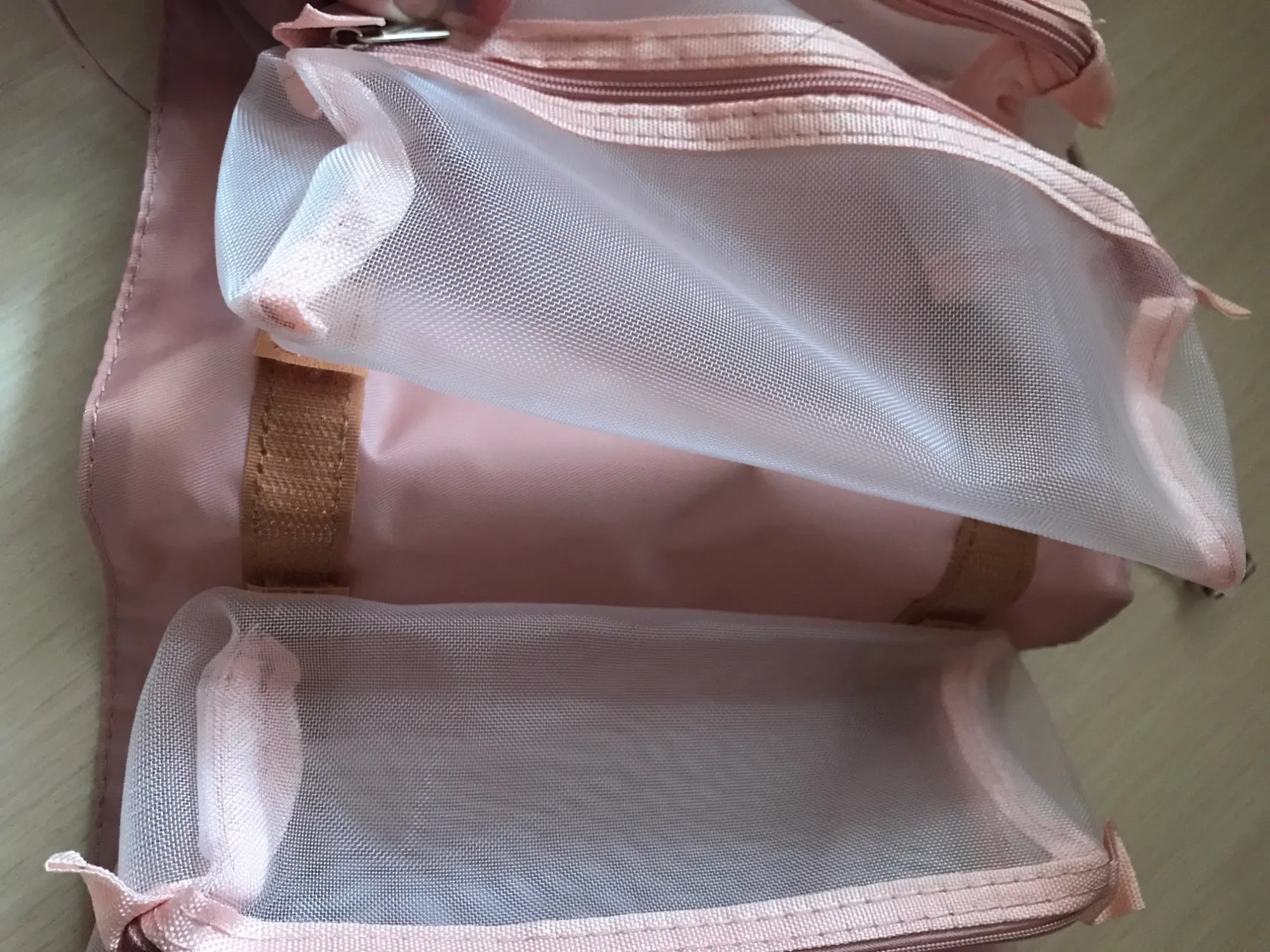 Если заполнить все кармашки, сумка не сворачивается. Получается огромная непонятная масса, перетянутая веревочками. Только для зубной щетки и одного тюбика крема.