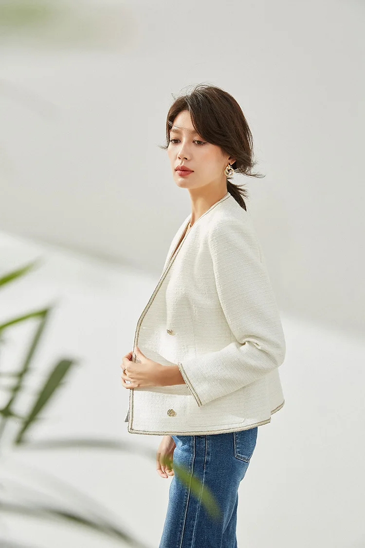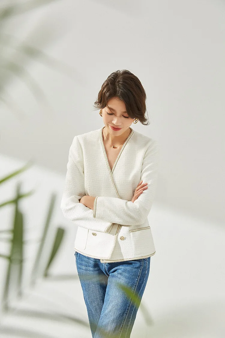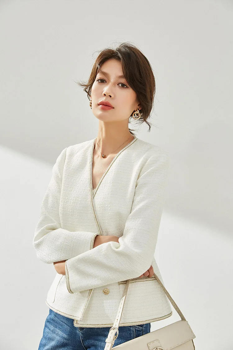 Женское короткое пальто, с длинным рукавом, с V-образным вырезом, в винтажном стиле, для офиса, весна 2021