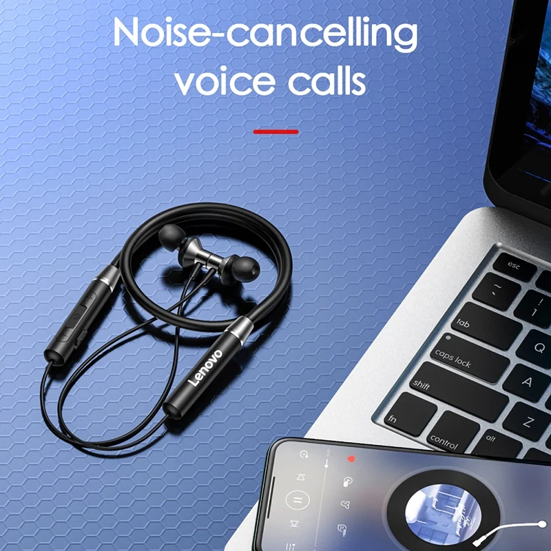 Магнитные беспроводные наушники Lenovo HE05, Bluetooth-гарнитура с шейным ободом, стерео, спортивные, с шумоподавлением, водонепроницаемые наушники