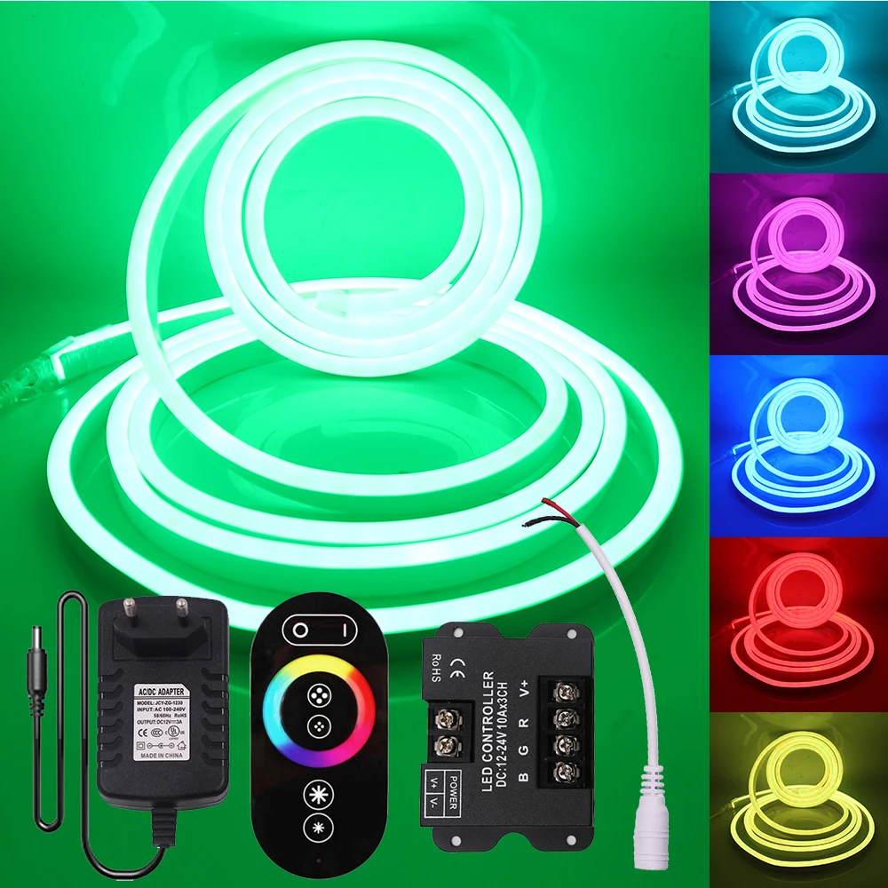 Сенсорный пульт RGB неоновая вывеска 12 В светильник лента 5050/ 2835 IP68 гибкая трубка светодиодная неоновая лампа s EU US Power Kit 1 м 2 м 5 м 10 м