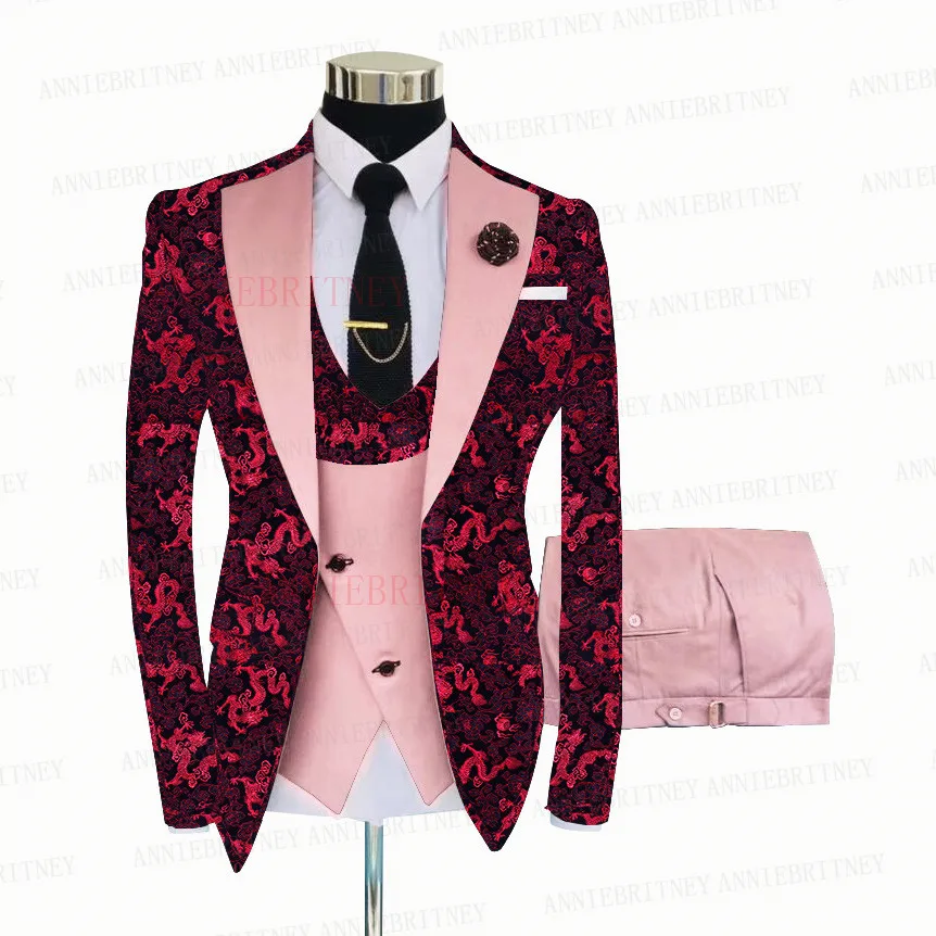 Костюм свадебный мужской из 3 предметов, роскошный розовый костюм ж...