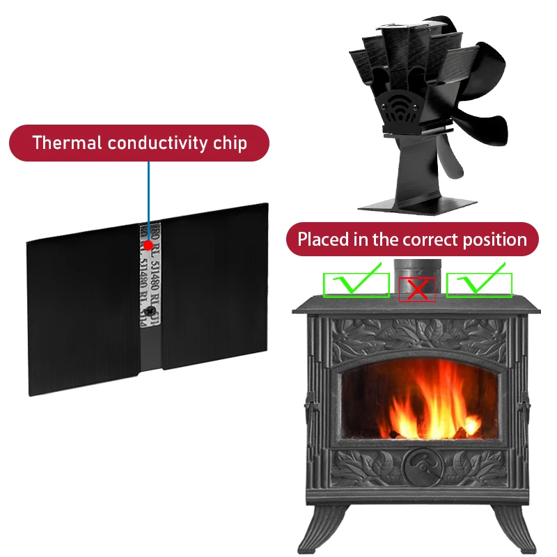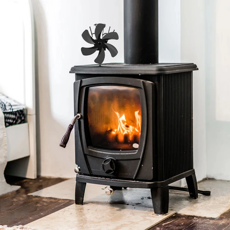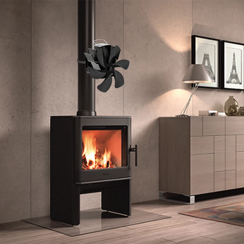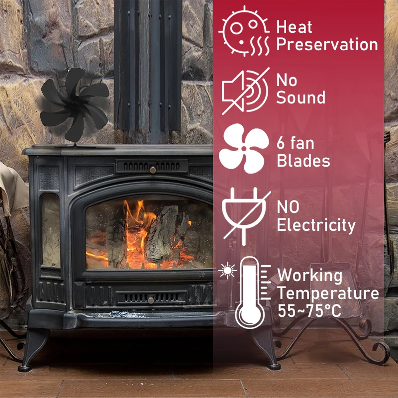 Горелка для камина Ecofan, черный бесшумный Домашний Вентилятор для печи, работающий от тепловой энергии с 6 лезвиями, вентилятор для камина для эффективного распределения тепла