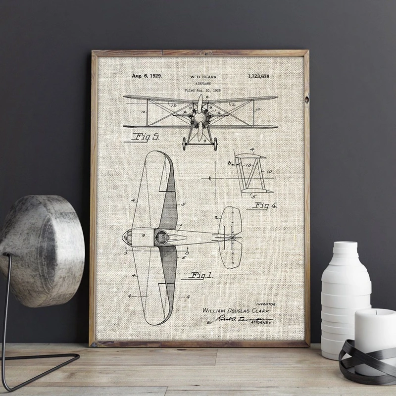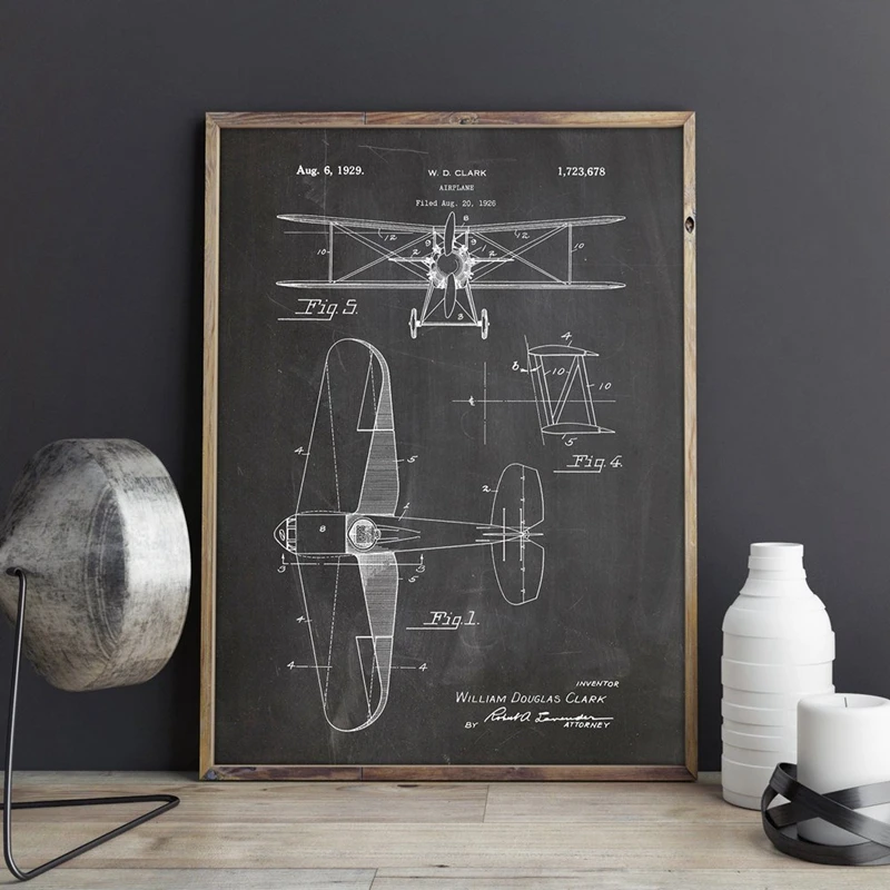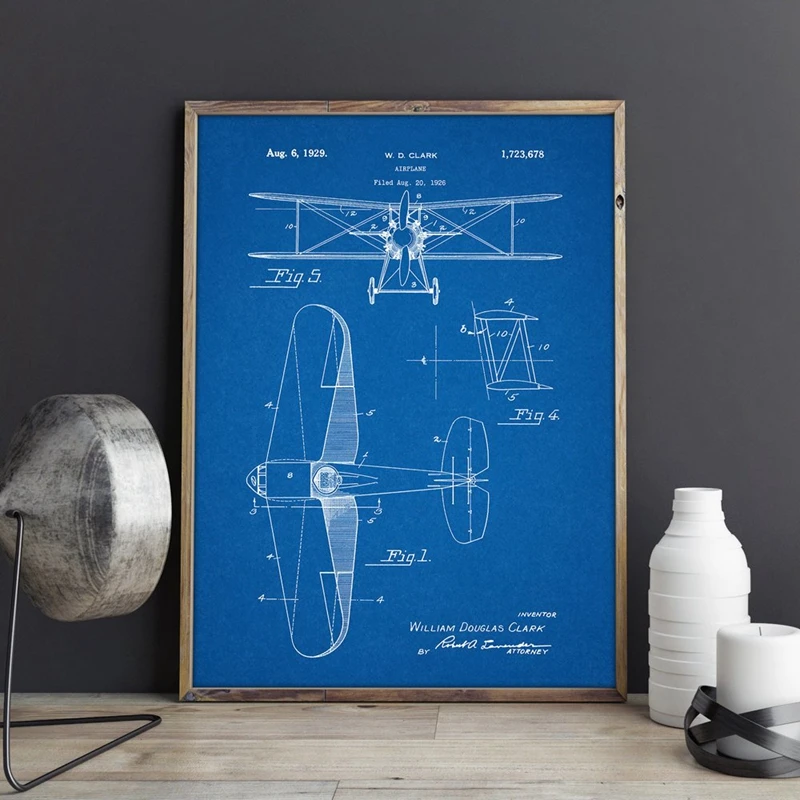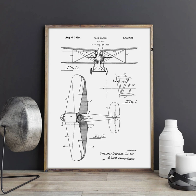 Патентованная машинная Картина на холсте винтажный настенный постер схема Художественная печать самолета Настенная картина для мальчика спальни комнаты декор