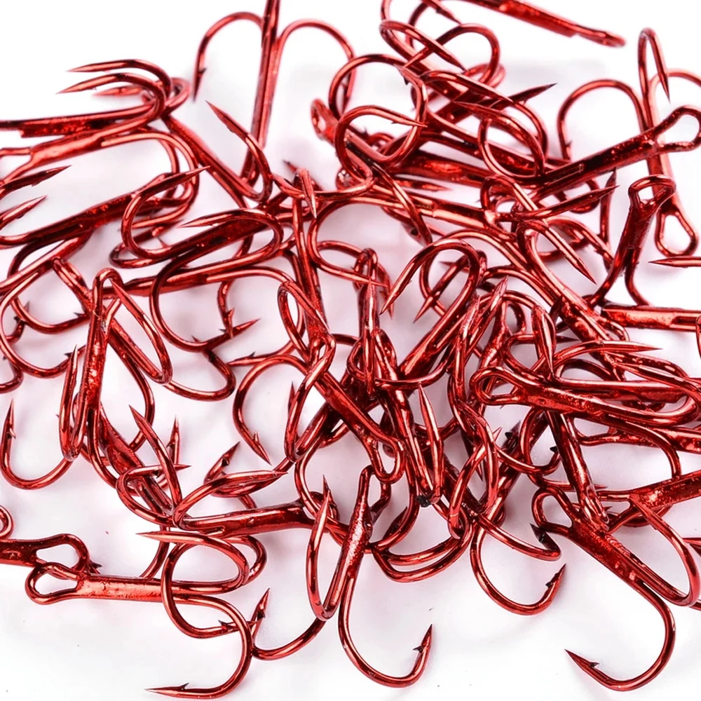 Рыболовные крючки красного цвета, 20 шт.лот, тройные Крючки с зазубринами из высокоуглеродистой стали
