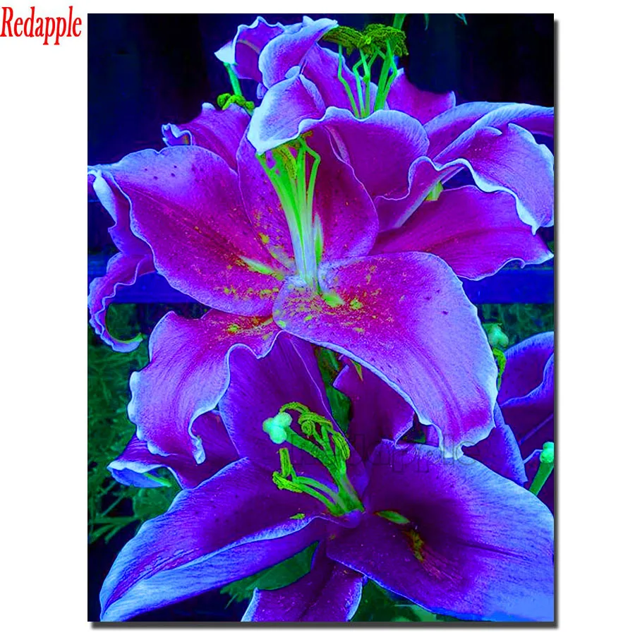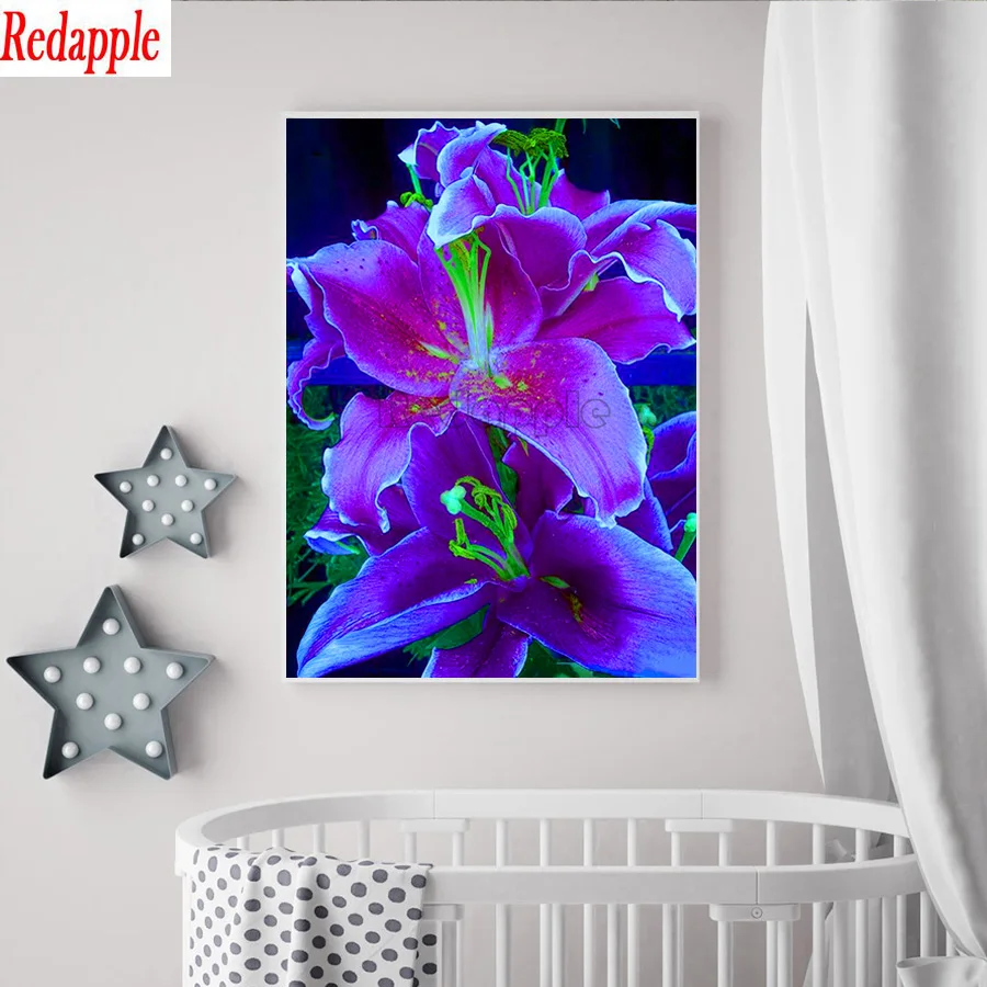 5D алмазная живопись, фиолетовый цветок лилии, полная квадратная Алмазная вышивка, вышитые крестом подарки Цветочные креативные наборы мозаики, домашний декор