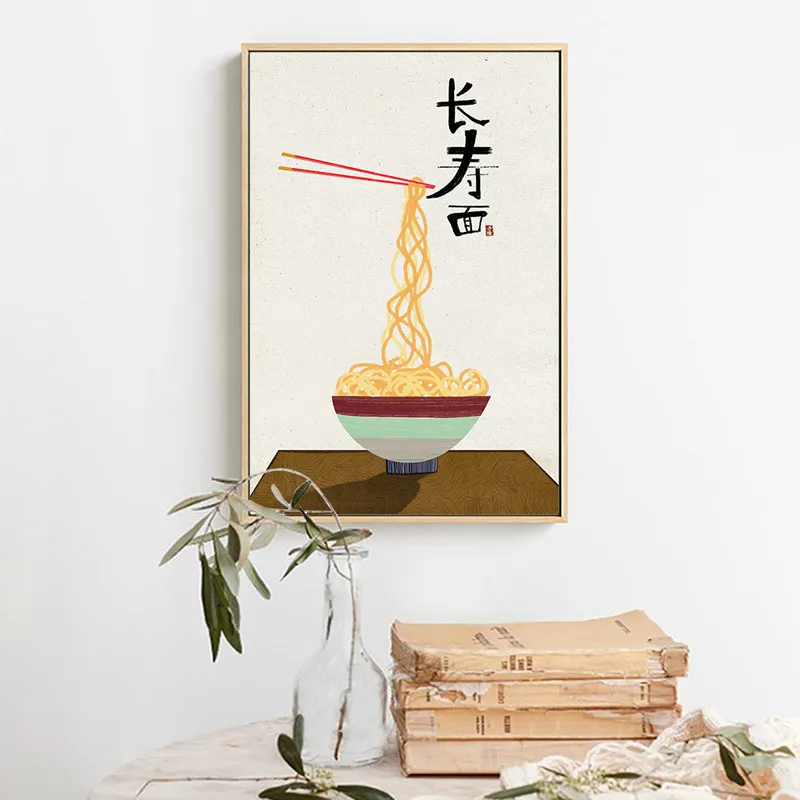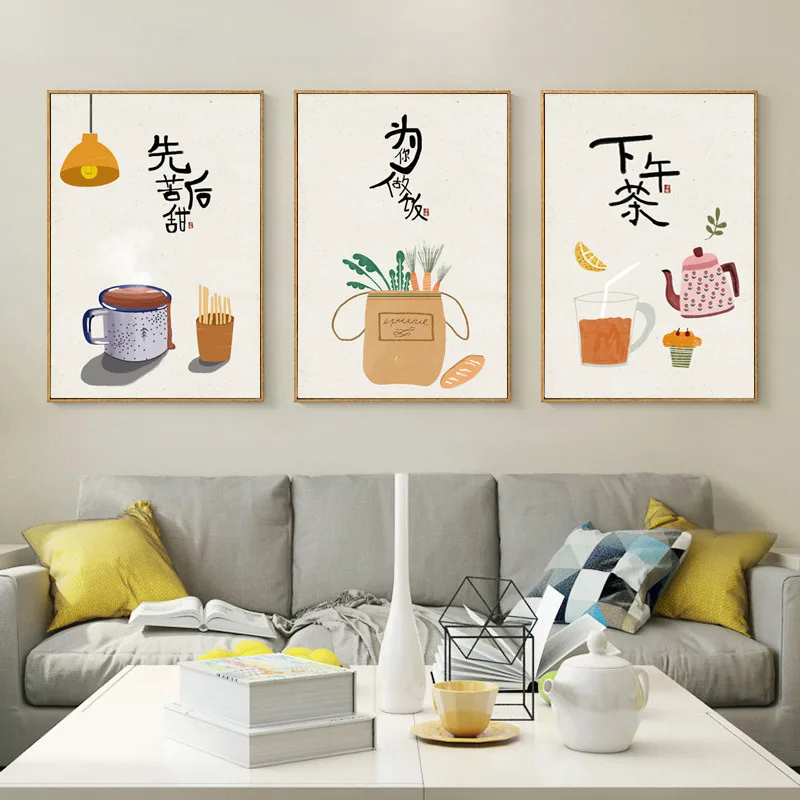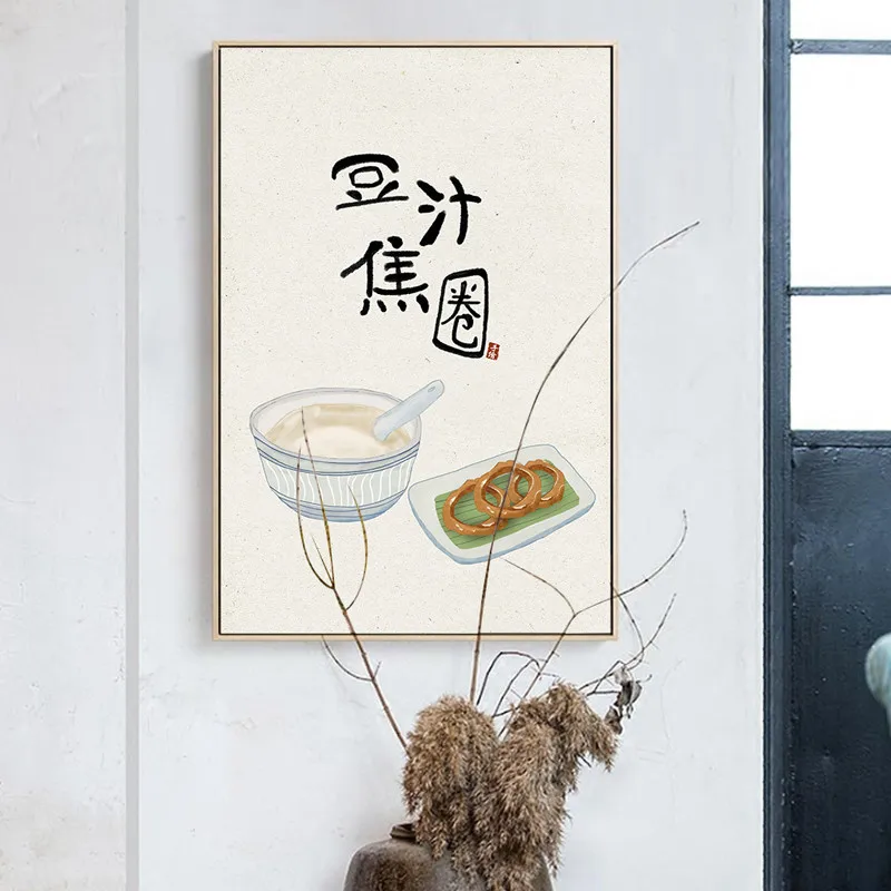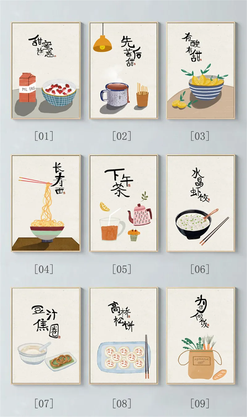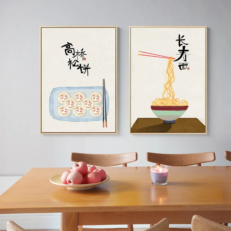 Настенный постер с изображением вкусной еды, мультяшный ручной печати, чистая и свежая Картина на холсте в китайском стиле, украшение для столовой, ресторана