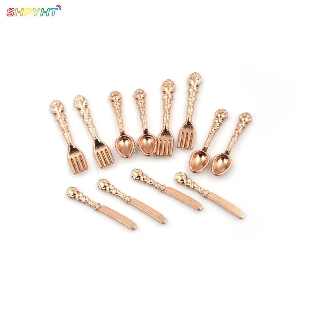 12 шт. 1:12 кукольный дом миниатюрный аксессуары вилка нож ложка ми...
