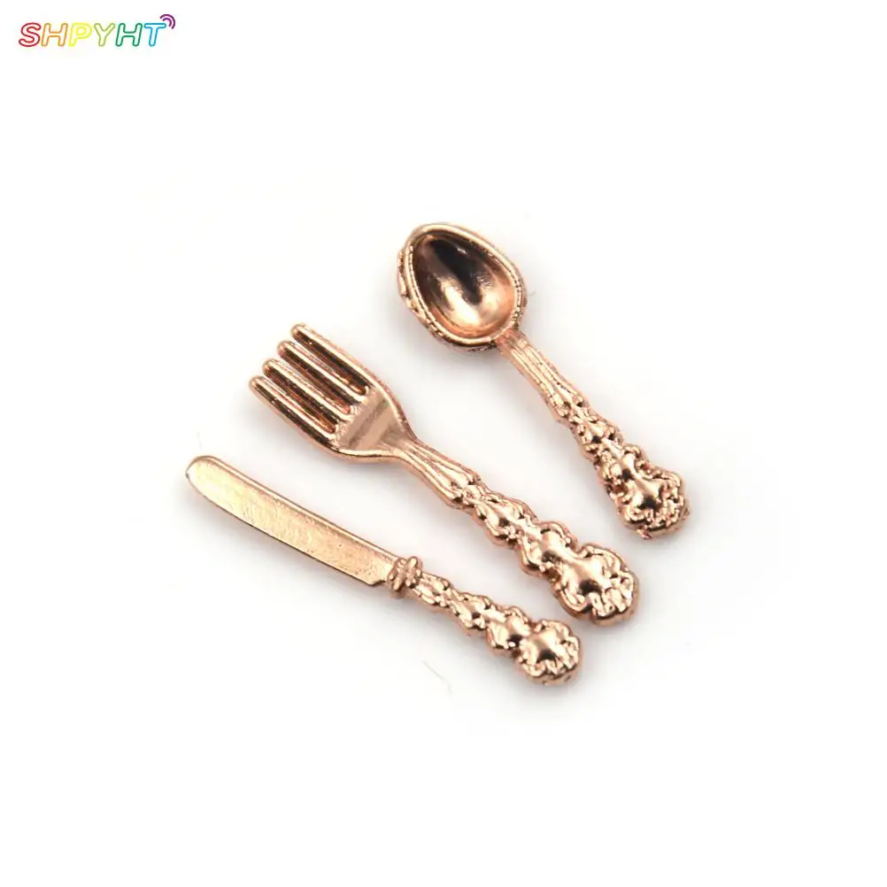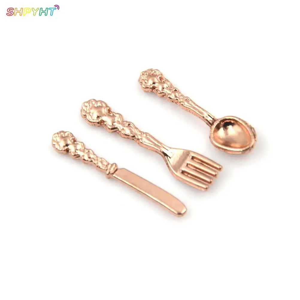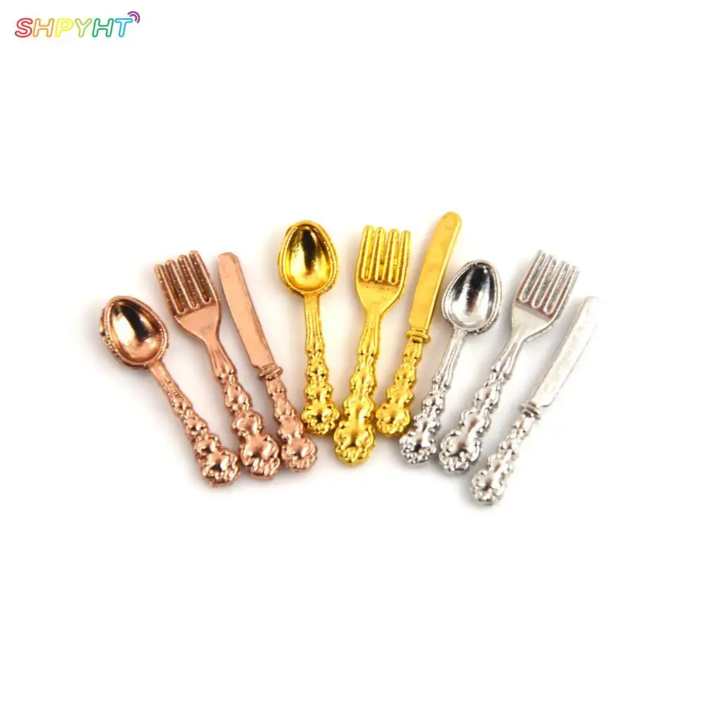1 Набор 1:12 Вилка Нож суповая ложка, столовые приборы имитация кух...