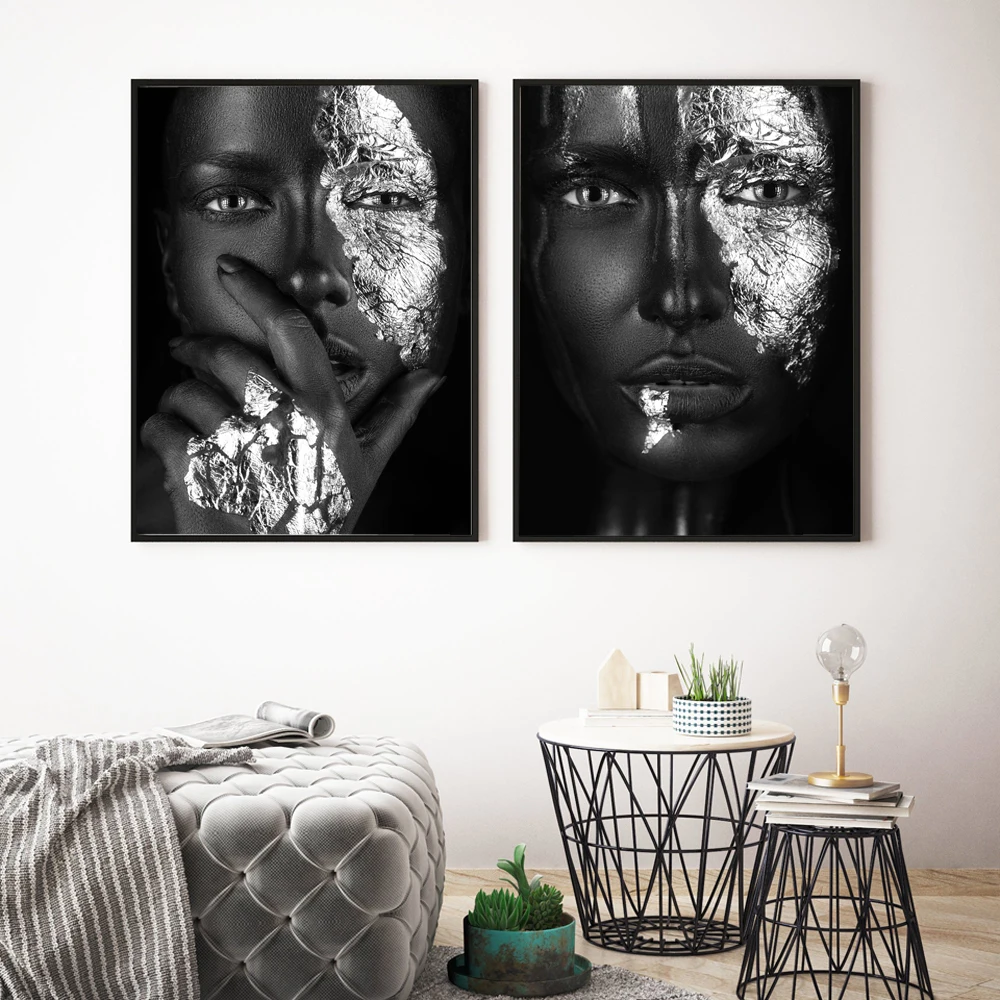 Плакат Африканской черной женщины, большой размер, картина на стену, лофт, Современное украшение для дома, золотые сексуальные женские художественные принты, декор комнаты