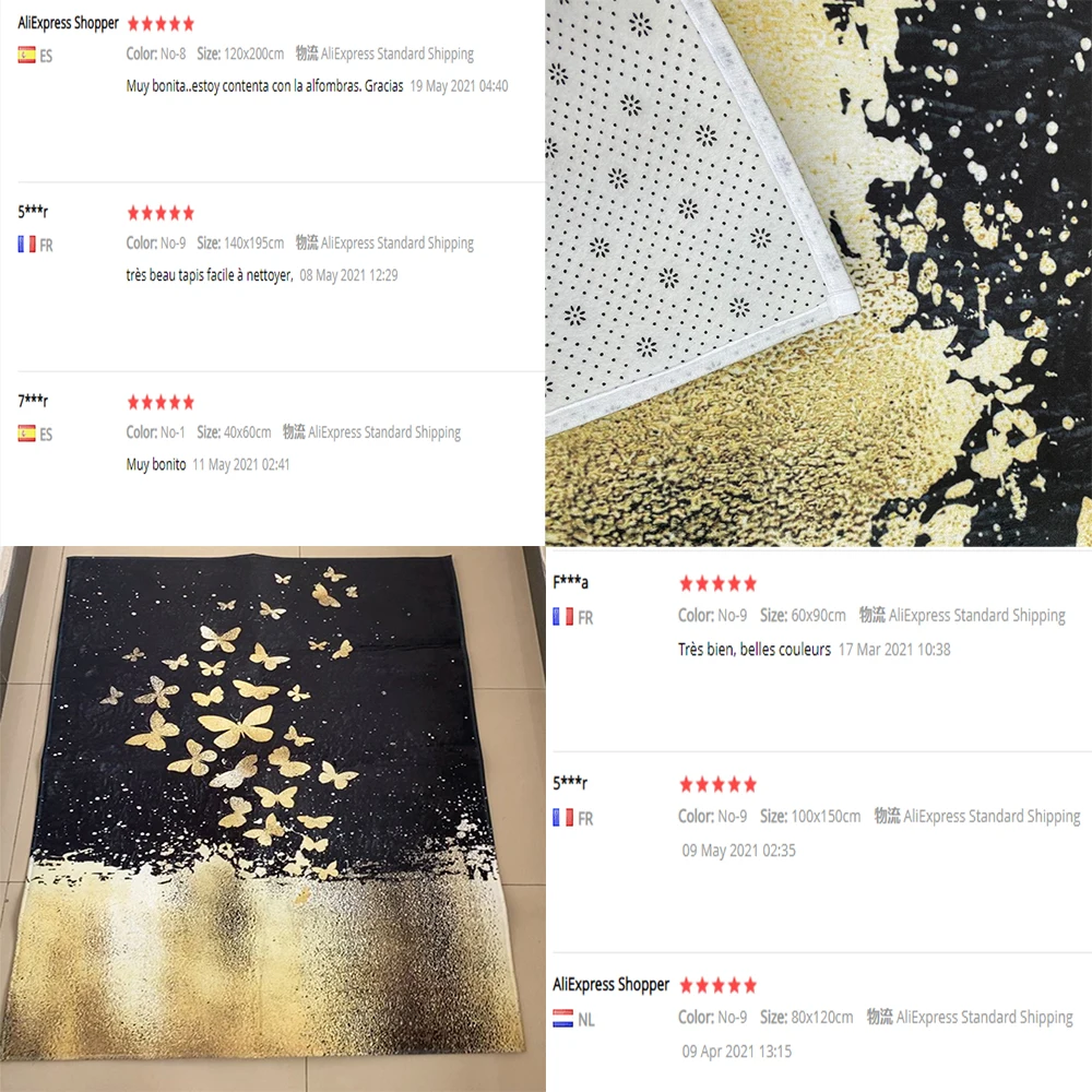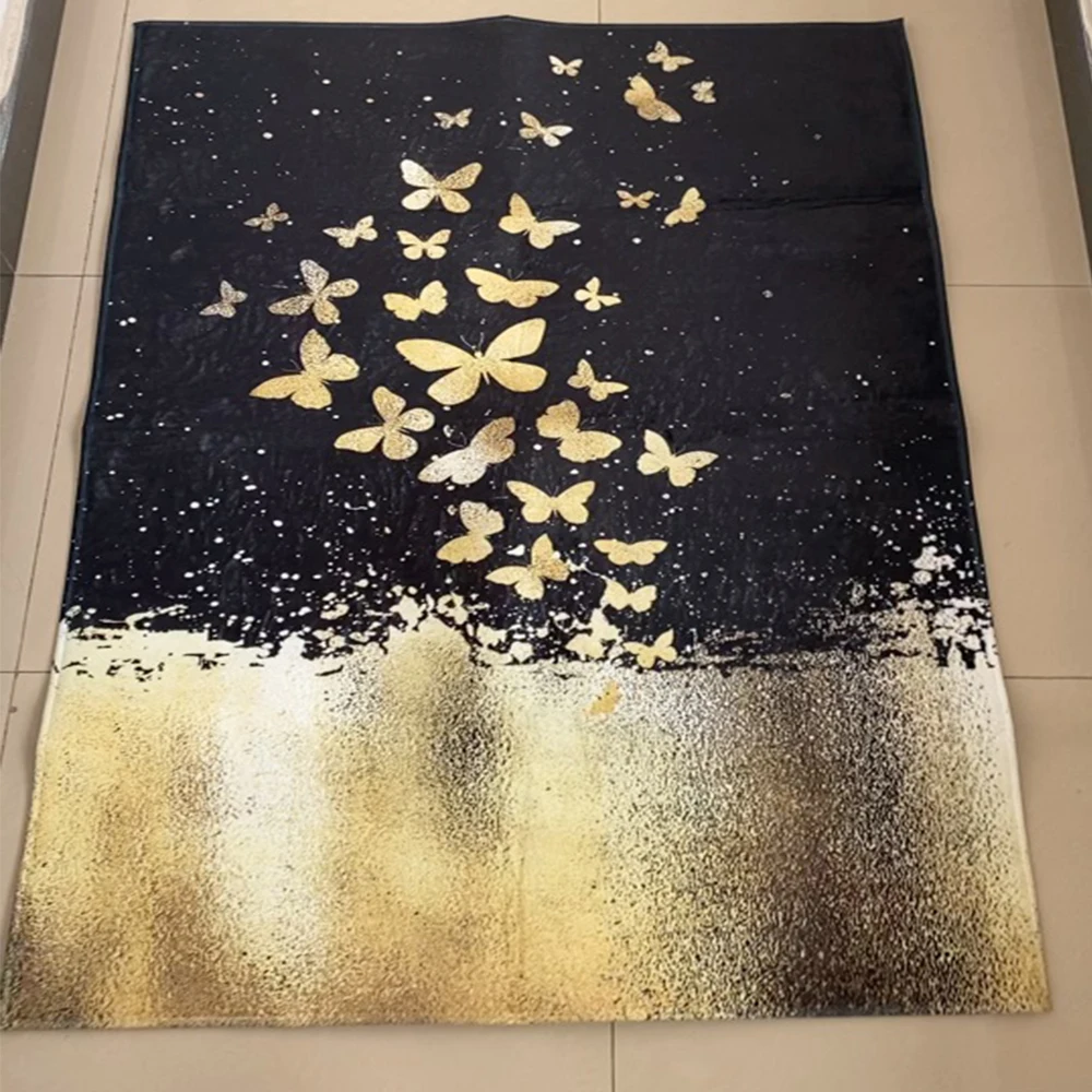 Современный ковер для гостиной, 3D ковер для спальни, ковер с узором из искусственной кожи для гостиной и кухни, коврик для пола с золотыми бабочками, напольный коврик