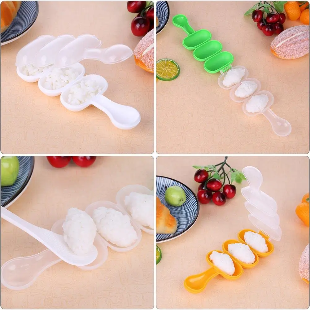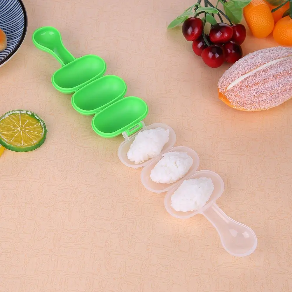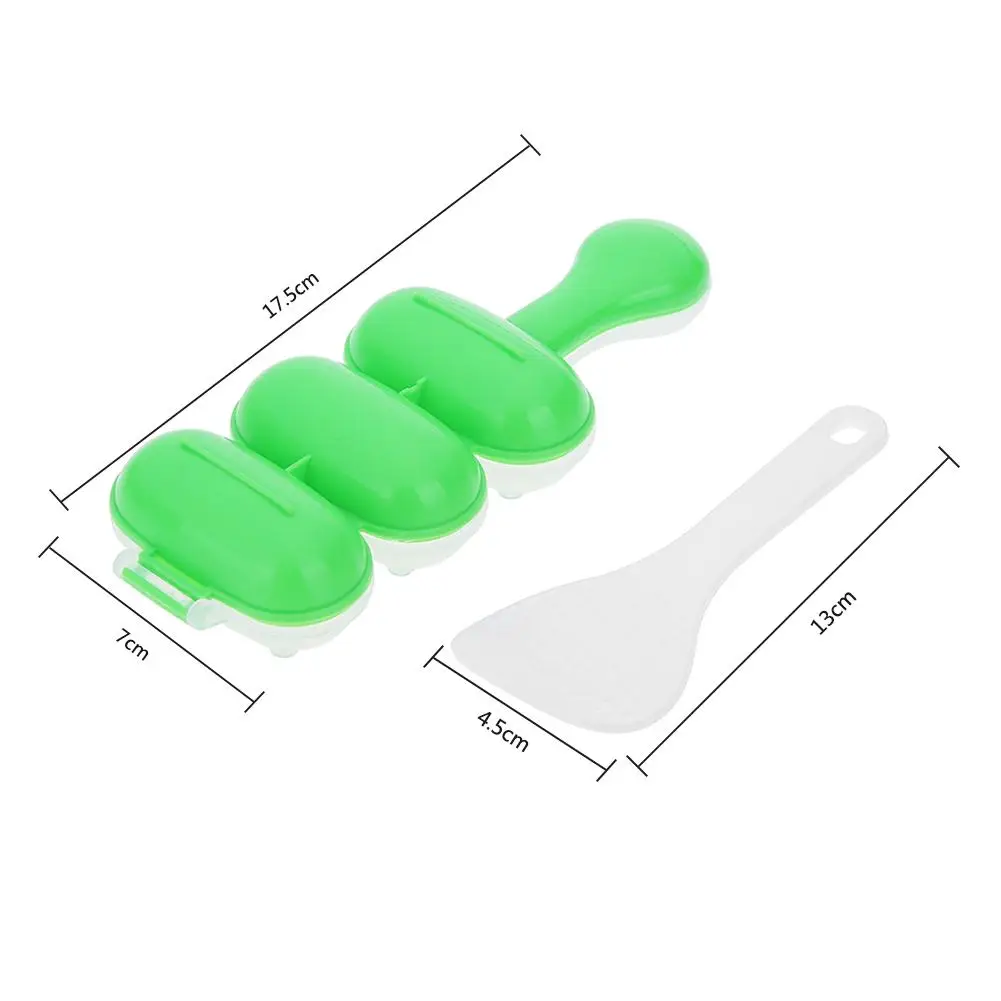 Размеры: форма для рисовых шариков: 17,5*7*3 см/6,89*2,76*1,18 ", совок: 13*4,5 см/5,12*1,77" Цвет: зеленый, оранжевый, белый.Применение: кухонная утварь, домашнее ежедневное использование и так далее.