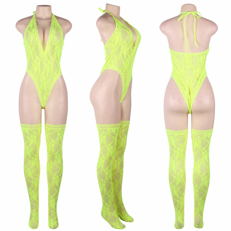 Комбинезоны Для женщин s комбинезон размера плюс Для женщин сексуальный кружевной комплект нижнего белья с чулки с v-образным вырезом с низким вырезом на спине для тела Femme RW81021