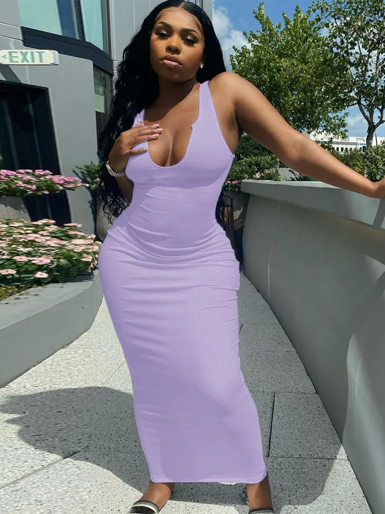 Женское платье-макси в рубчик, однотонное облегающее платье без рук...