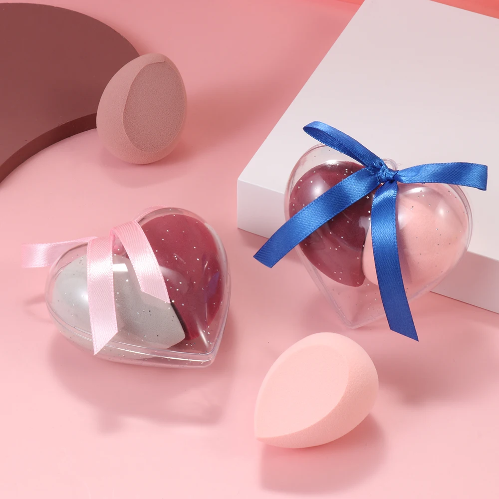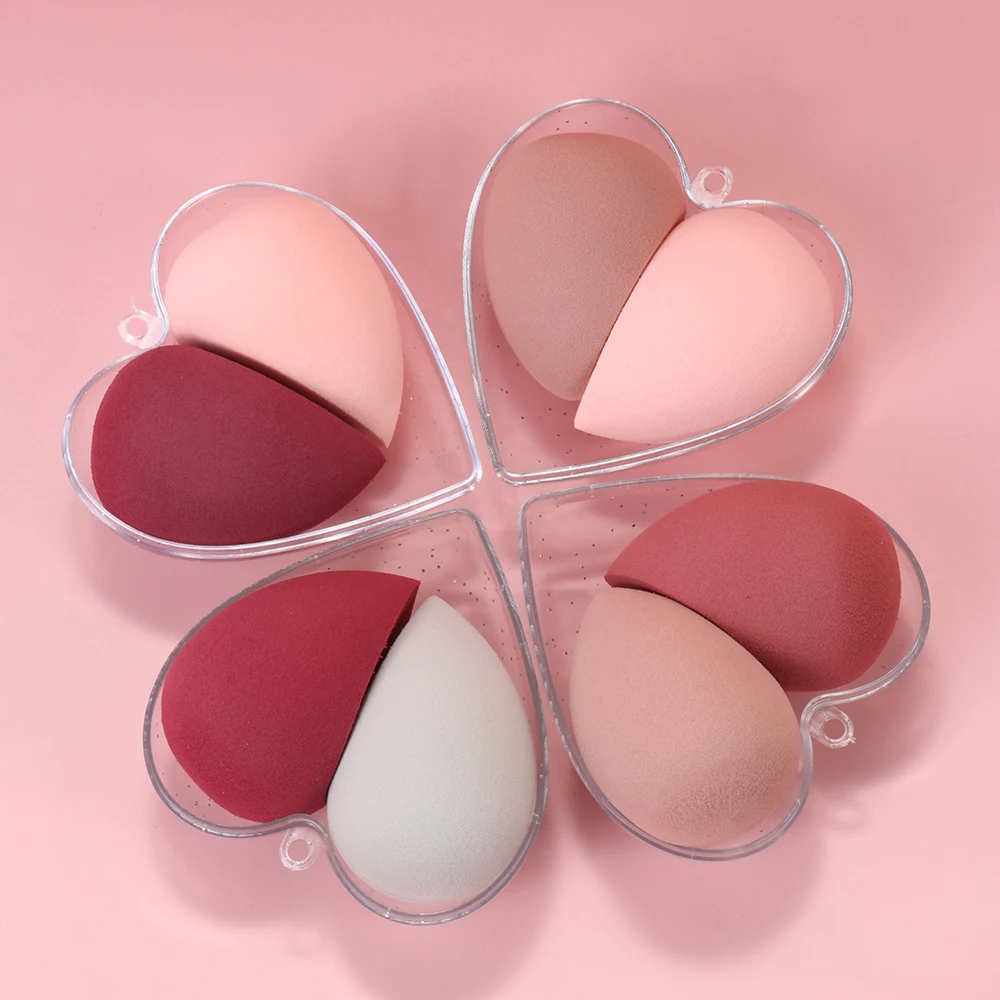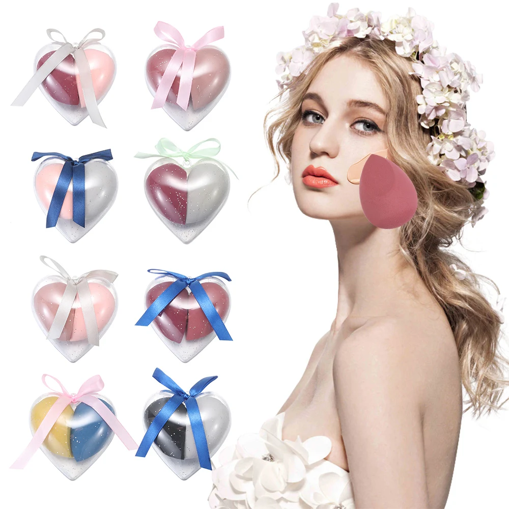 Комплект из 2 предметов, в форме сердца Красота мини макияж яйцо сухой и влажной тонкой мульти-Цвет пуховка для пудры дополнен воды Make Up спонжи для смешивания инструмент