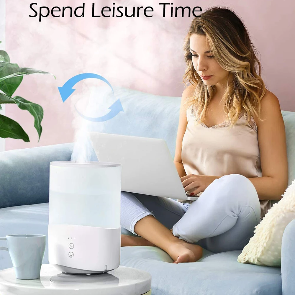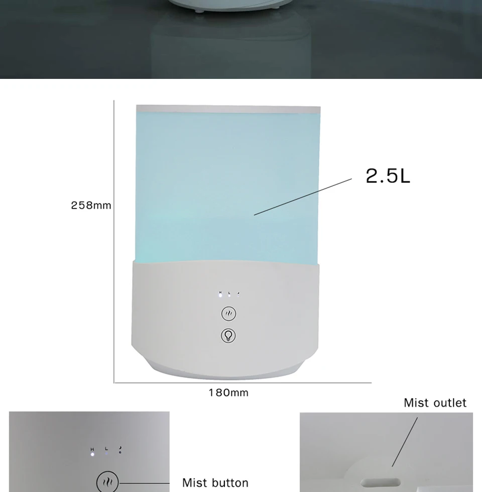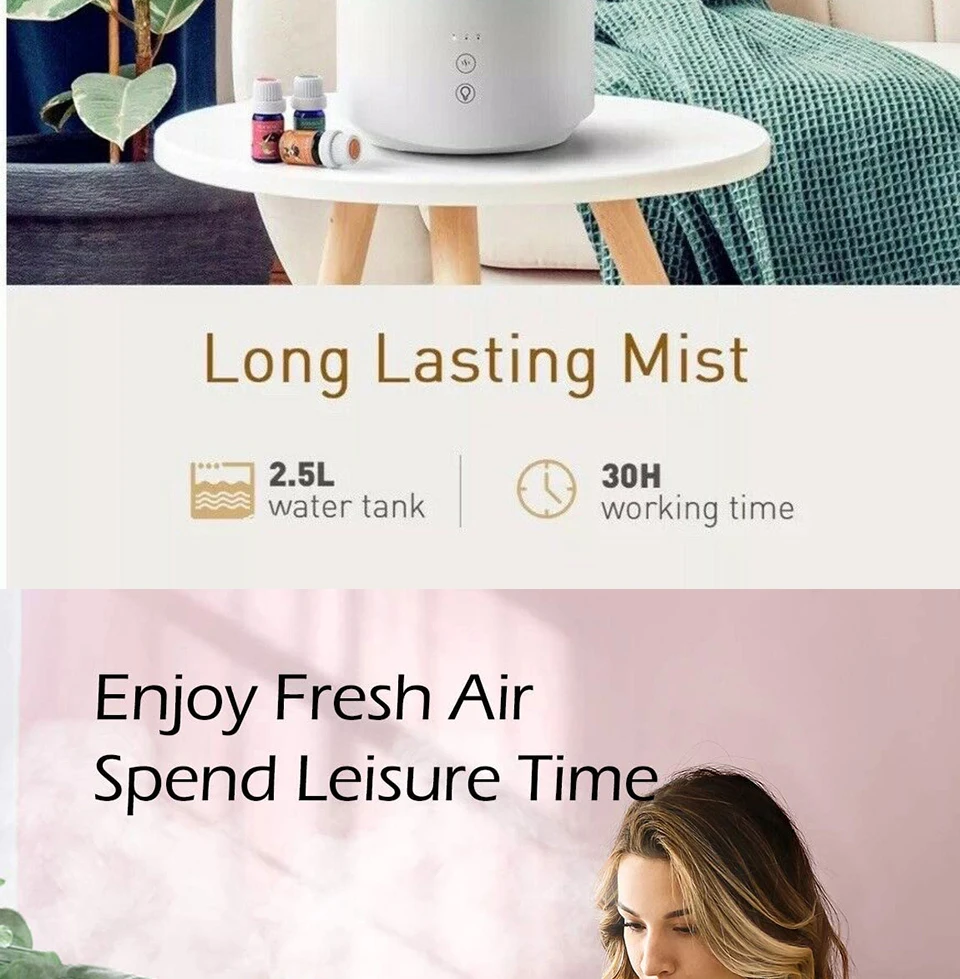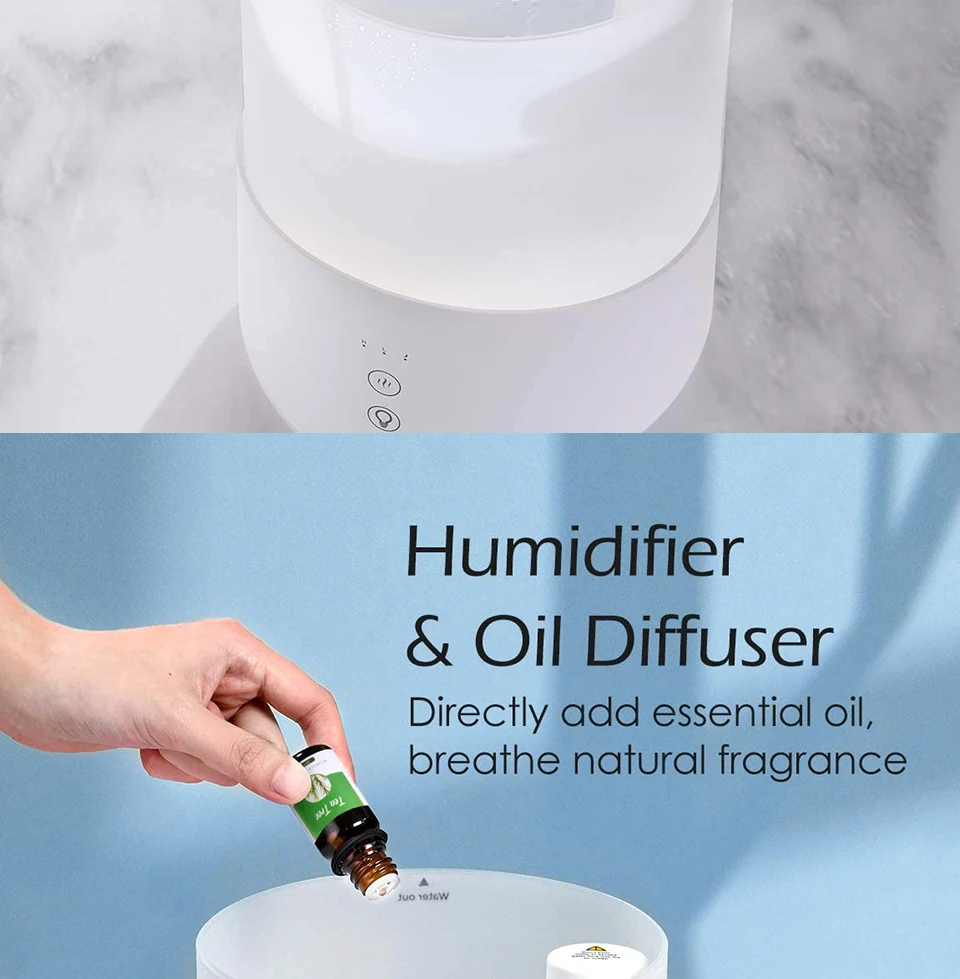 Для дома, увлажнитель воздуха, 2.5L двойная насадка с выпуском холодного ароматизирующего пара диффузор с цветным светодиодный светильник Сильный туман ультразвуковой сенсорный увлажнитель воздуха