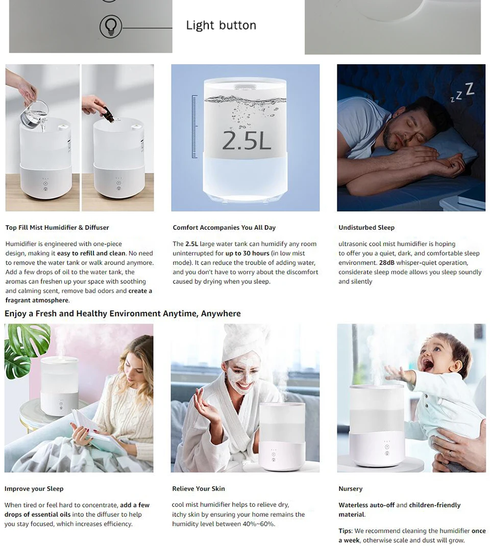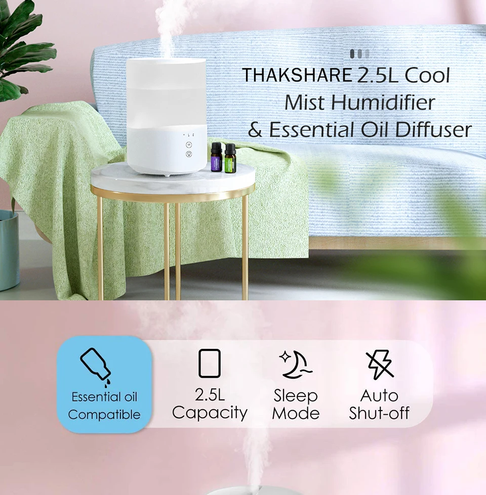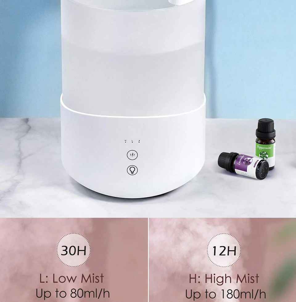 Для дома, увлажнитель воздуха, 2.5L двойная насадка с выпуском холодного ароматизирующего пара диффузор с цветным светодиодный светильник Сильный туман ультразвуковой сенсорный увлажнитель воздуха