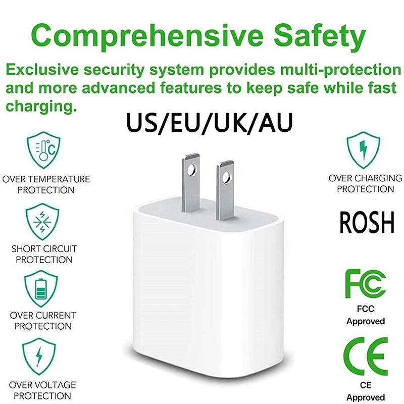 Сетевой адаптер PD, 20 Вт, Тип C, вилка стандарта США, ЕС, Австрали...