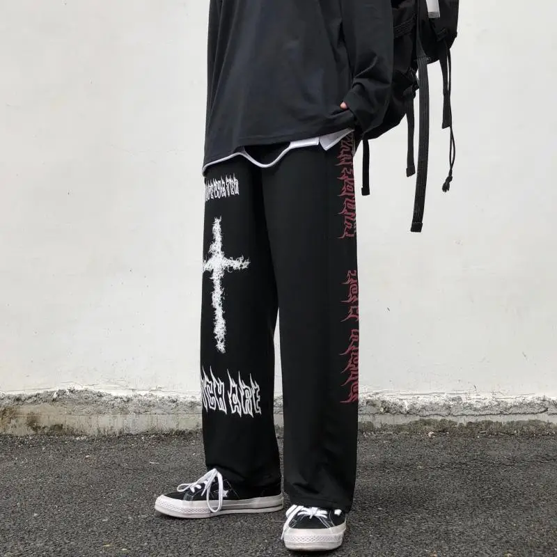 Новинка 2021, японские темные черные прямые широкие брюки в стиле Харадзюку с граффити в стиле INS в стиле жареной улица, тренд для мужчин и женщин Y2k