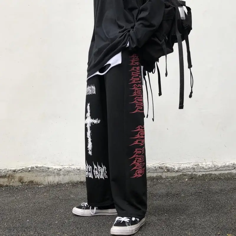 Мужские брюки с широкими штанинами Goth, прямые повседневные брюки ...