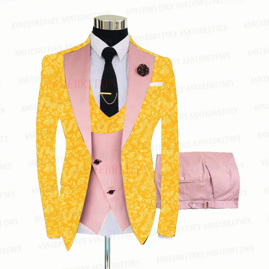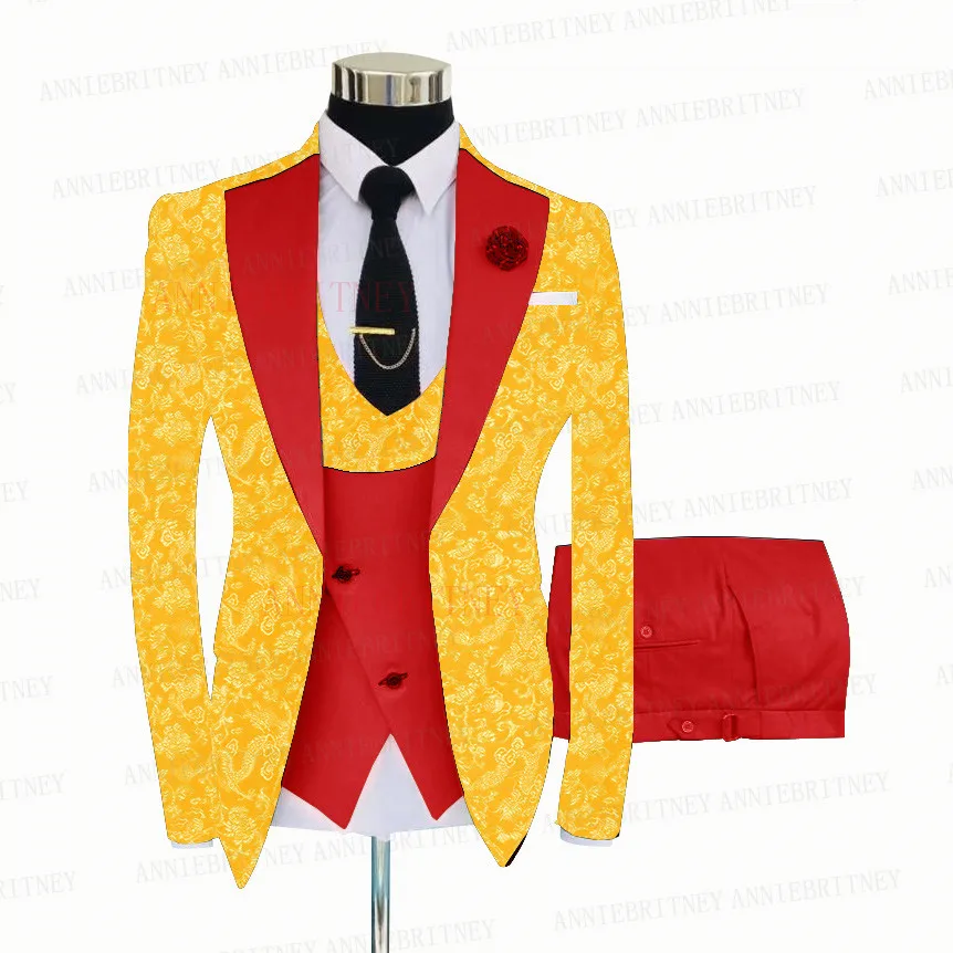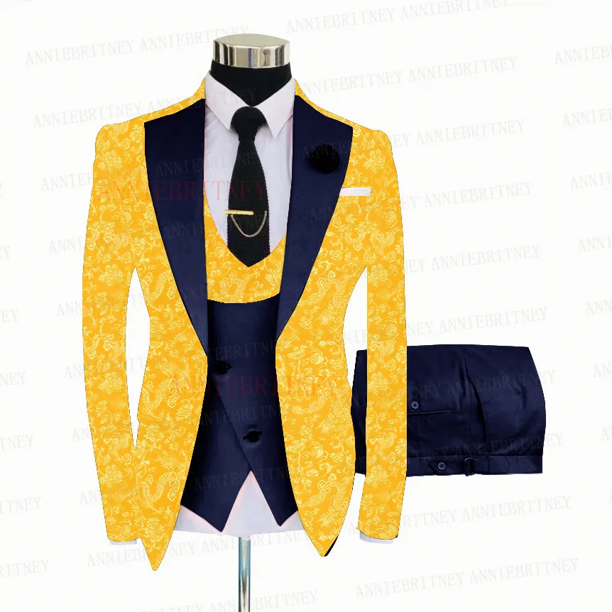 Жаккардовый костюм для мужчин из 3 предметов, приталенный пиджак, д...
