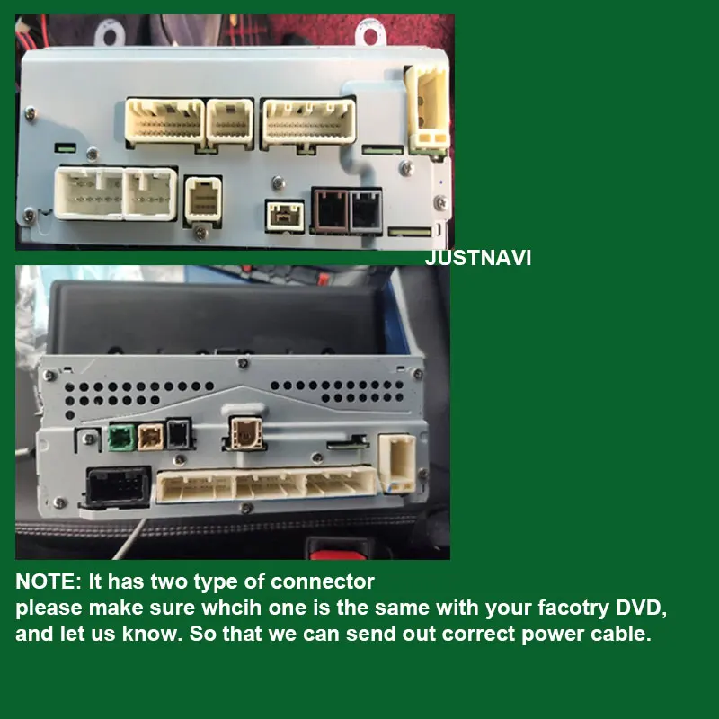 Примечание: Это стандартный кабель, который мы отправляем по умолчанию. Если ваш автомобиль имеет оригинальный вид заднего вида, пожалуйста, разбирайте экран и покажите нам интерфейс. На следующем рисунке показаны два интерфейса с оригинальным задним обзором, которые должны быть подтверждены отдельно. И приобретайте провод, пожалуйста, поймите.
