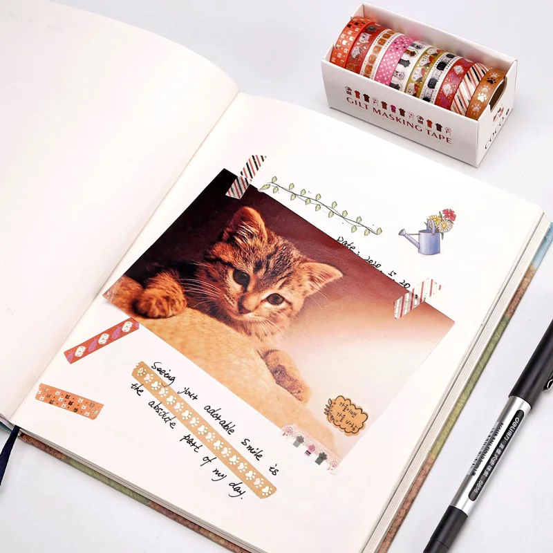 10 pcs cute cat dog Gold Foil Washi Tape Set Scrapbooking Diy Maski...
