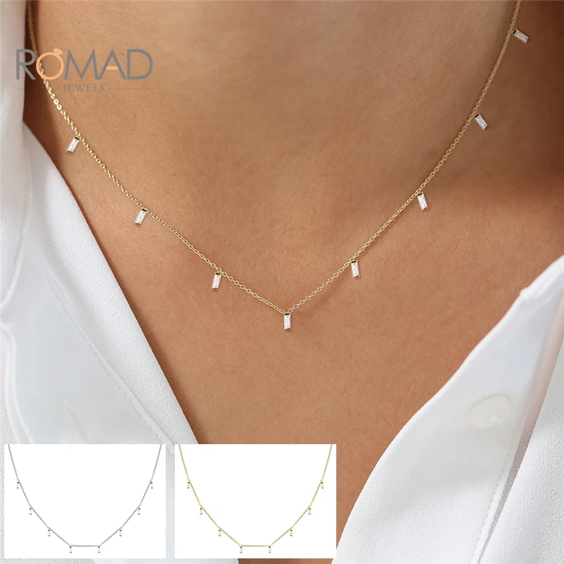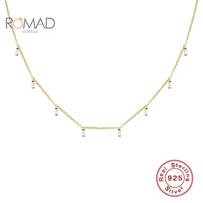 Женское квадратное ожерелье ROMAD из стерлингового серебра 925 пробы с бриллиантами, новая складывающаяся цепочка на ключицы, золотое ожерелье, шармы, оптовая продажа