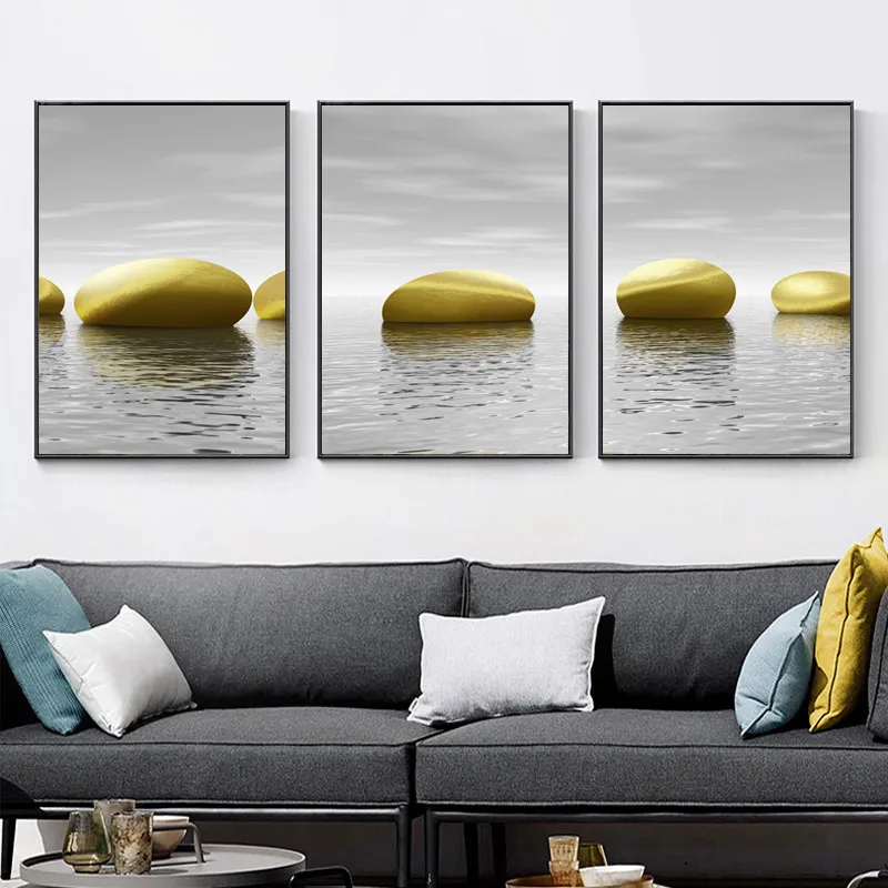 Абстрактная Картина на холсте с желтыми и черными камнями, плакаты ...