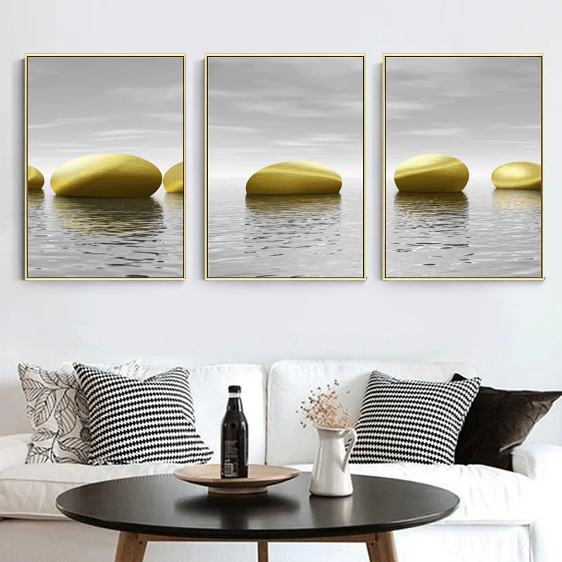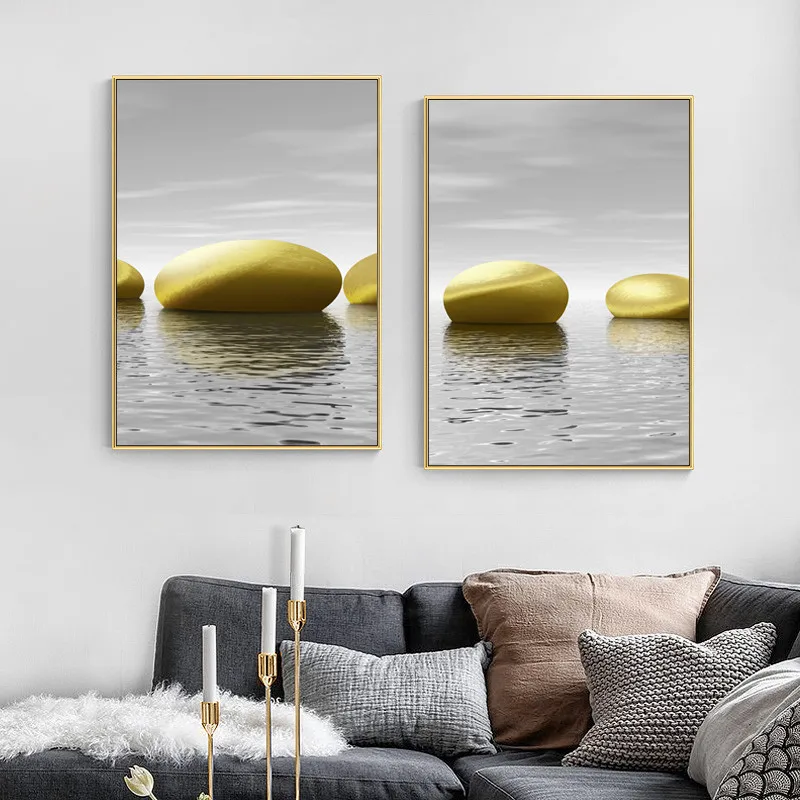Великолепный абстрактный Блестящий светильник для озера, Роскошные настенные художественные постеры с золотым камнем, Современная серая Картина на холсте для домашнего декора
