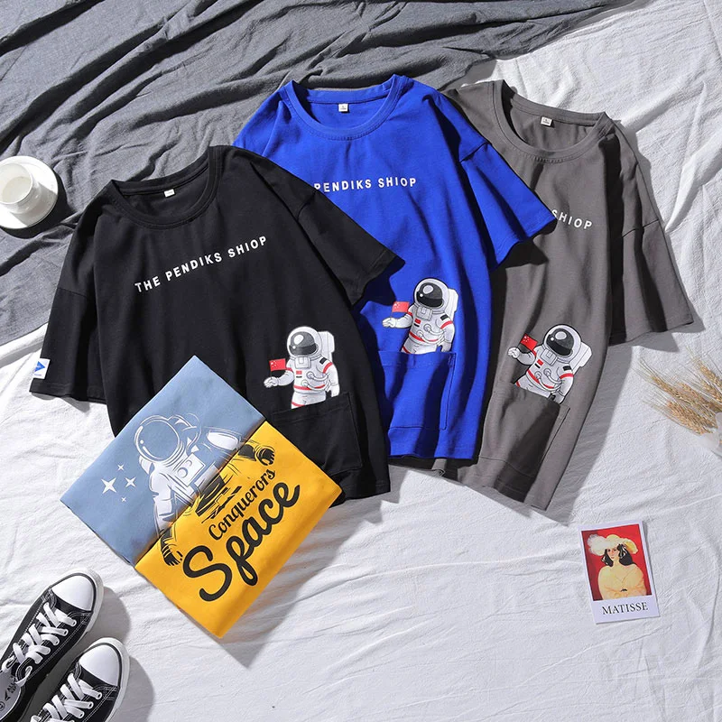 Футболка Varsanol мужская с принтом астронавта, хлопок, короткий рукав, оверсайз, уличная одежда, Харадзюку
