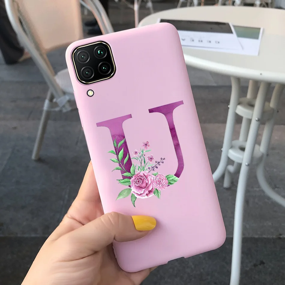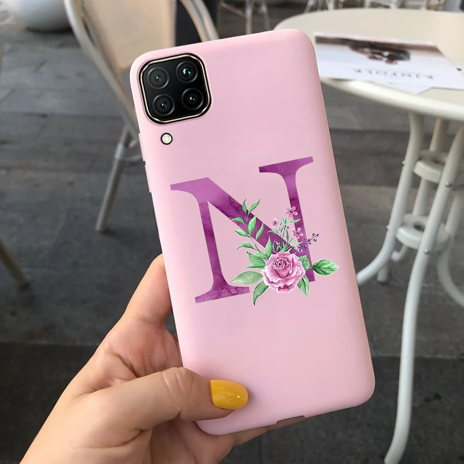 Чехол-накладка для Huawei P40 Lite, Huawei P40 Lite E, с милыми буквами, цветами, мягкие чехлы из ТПУ