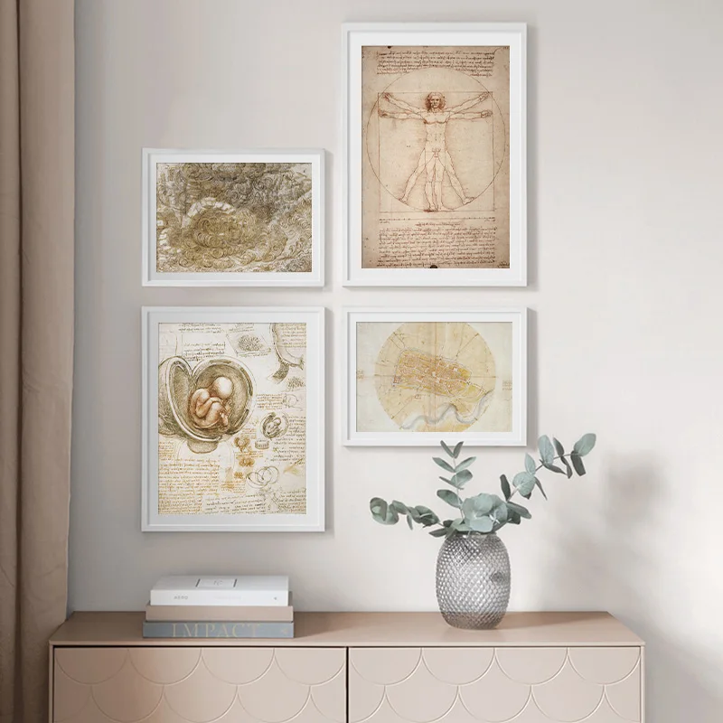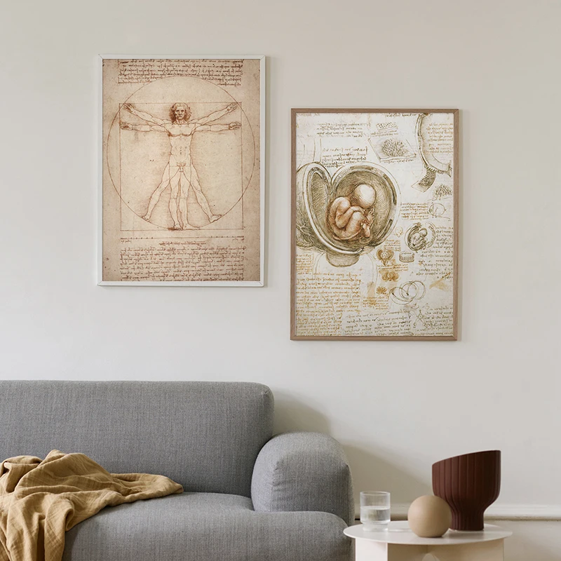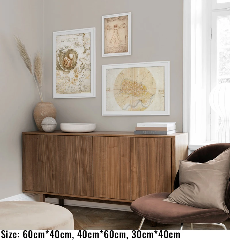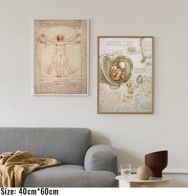 Плакаты с изображением витрувианского человека Леонардо рукопись да Винчи, ностальгическая карта имолы, винтажная Наклейка на стену, декоративная живопись