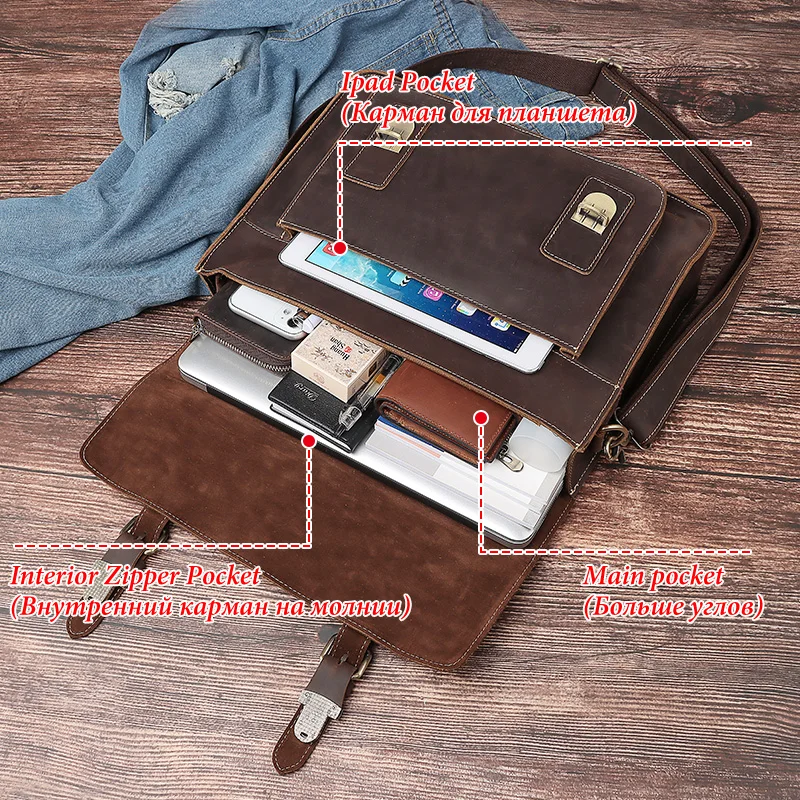 Портфель мужской из натуральной кожи, Сумка кросс-боди из кожи Крейзи Хорс, деловой мессенджер с большой вместимостью