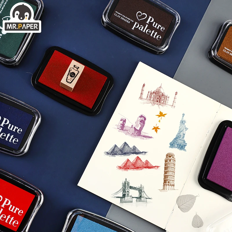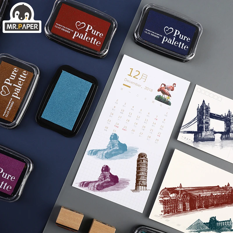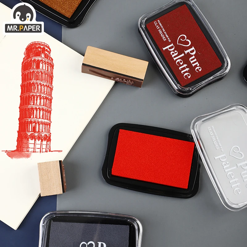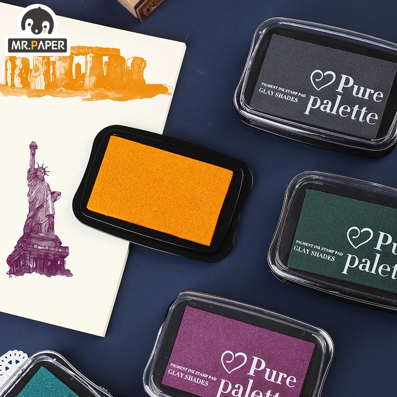 Чернильная подушечка Mr Paper, 12 цветов, винтажный стиль, на масляной основе, для ткани, дерева и бумаги, для скрапбукинга, чернильная подушечка, для рисования пальцами
