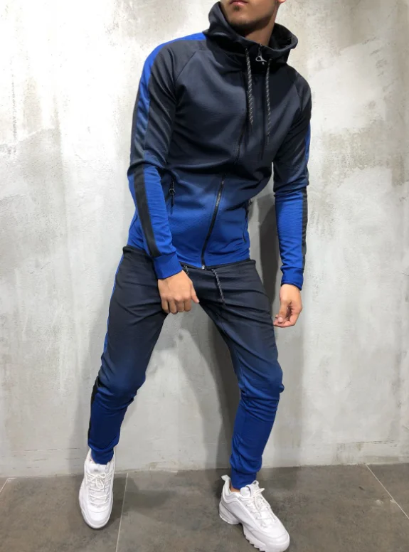 Наружная Длина3D Gradient Print Zipper Hip Hop Sport Hoodie Color Matching Men'S Sui