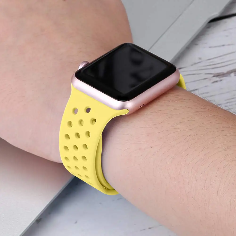Ремешок силиконовый для Apple Watch band 44 мм 40 мм 42 мм 38 мм, Воздухопроницаемый спортивный браслет для наручных часов iWatch series 5 4 3 se 6