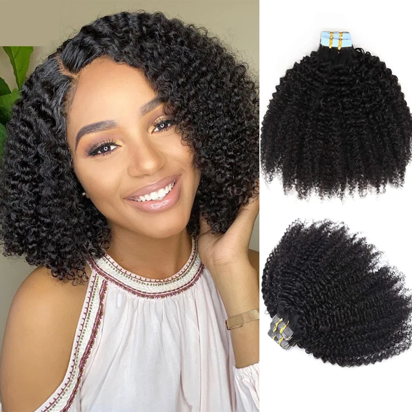 Короткие бразильские кудрявые вьющиеся волосы на ленте 40 шт.лот, утки из натуральных волос, желательные волосы на всю голову для женщин