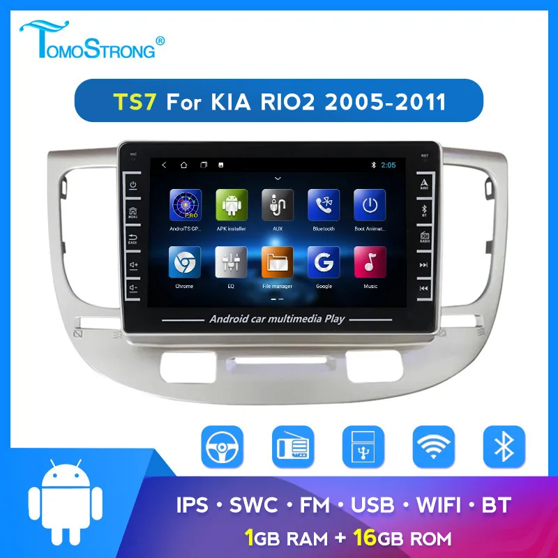 Автомобильный радиоприемник на приборной панели Android для Kia RIO 2 RIO2 2005, 2006, 2007, 2008, 2009, 2010, 2011, авто аудио, мультимедиа, экран IPS, Wi-Fi, USB