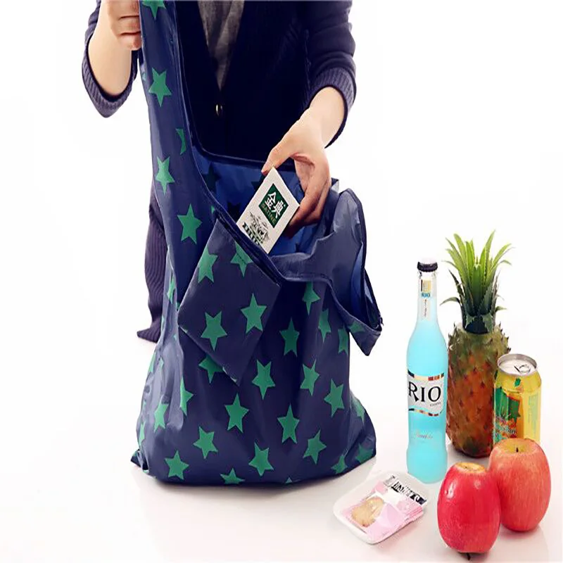 Оптовая продажа, 100 шт.лот, модная Экологически чистая Полиэстеровая нейлоновая сумка для хранения с мешочком, рекламная складная сумка для покупок