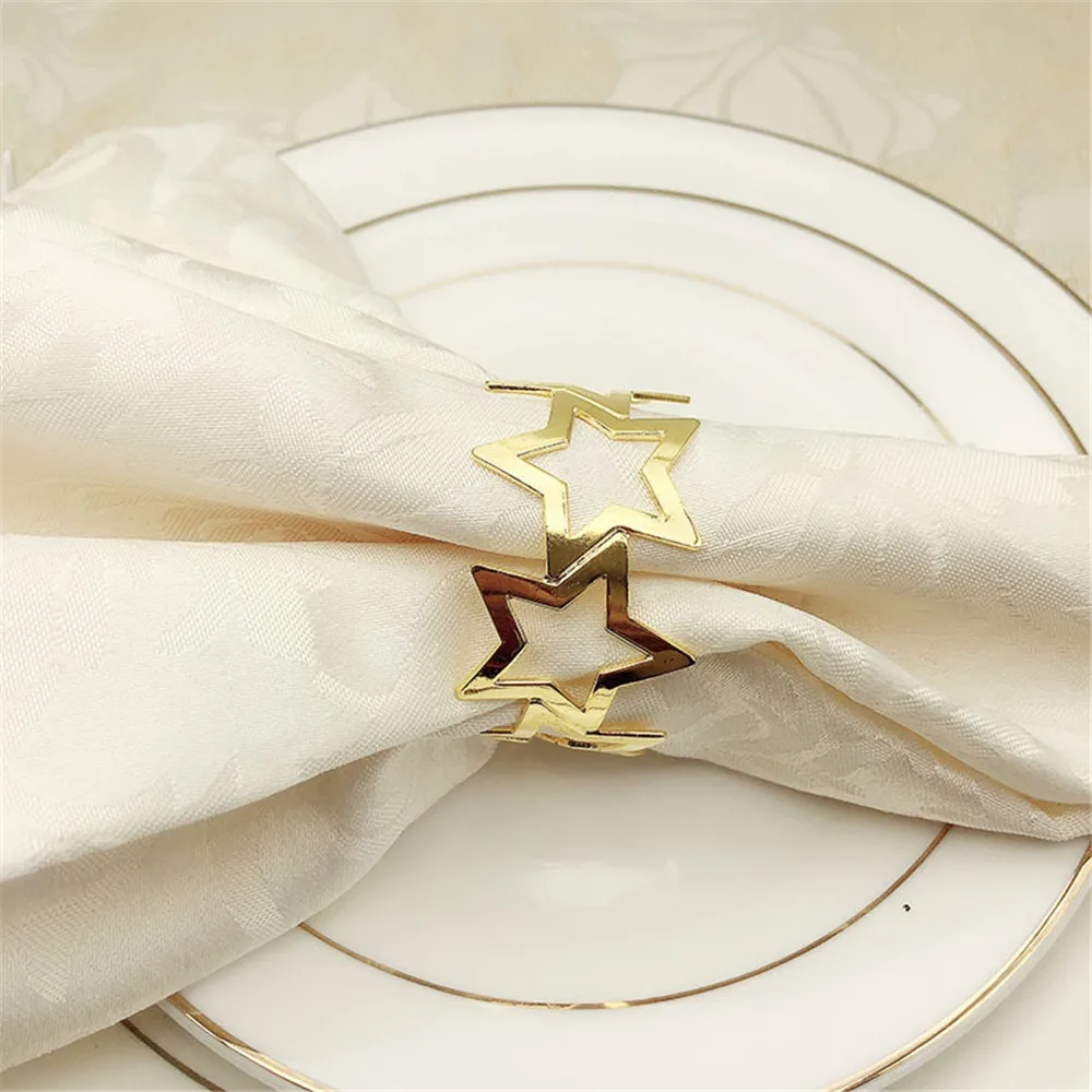 6за штуку Бесплатная доставка Новый пятиконечными салфетки со звездами пряжка кольцо Металлическое для салфетки кольца для салфеток золотистая ткань кольцо