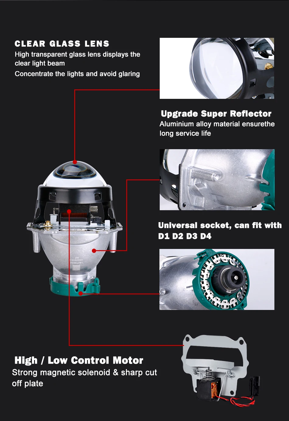 3,0 дюймов Bi светодиодные линзы для проектора 4300 лм 6000K 100 K ...