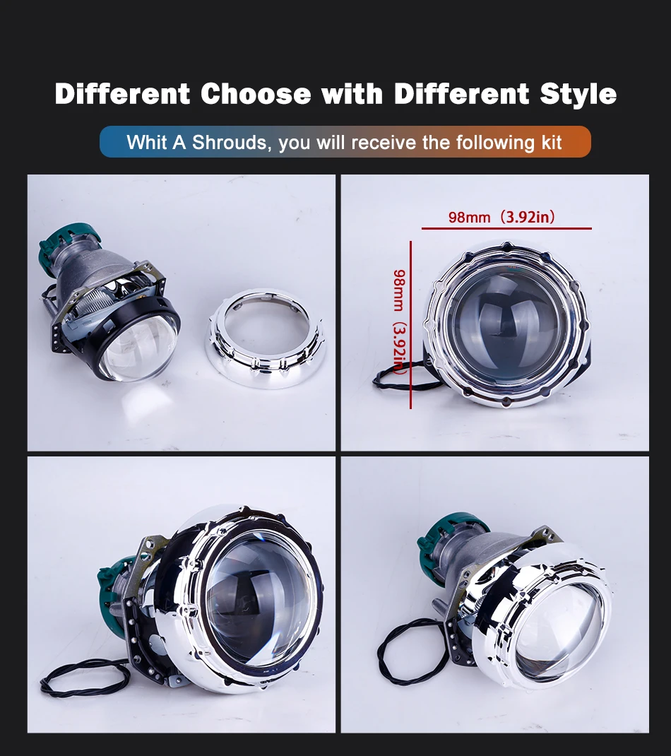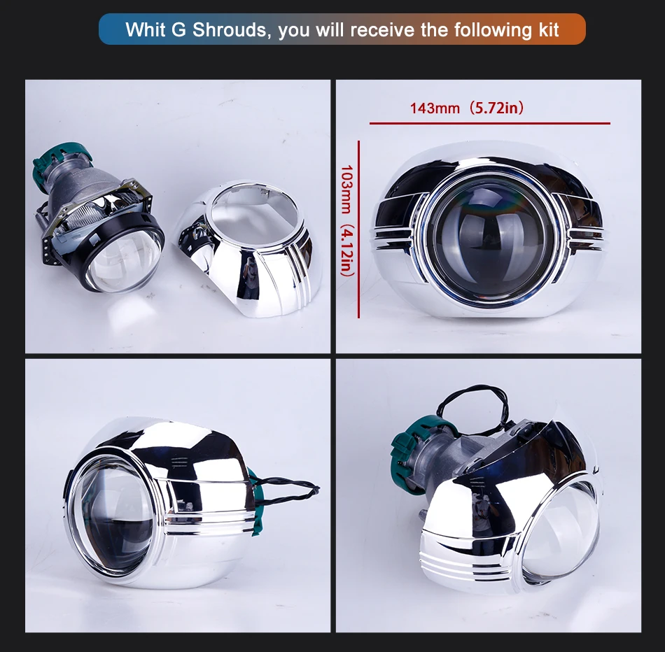 Package includes2 x projector lens without lamps, 2 x Shrouds of choice
