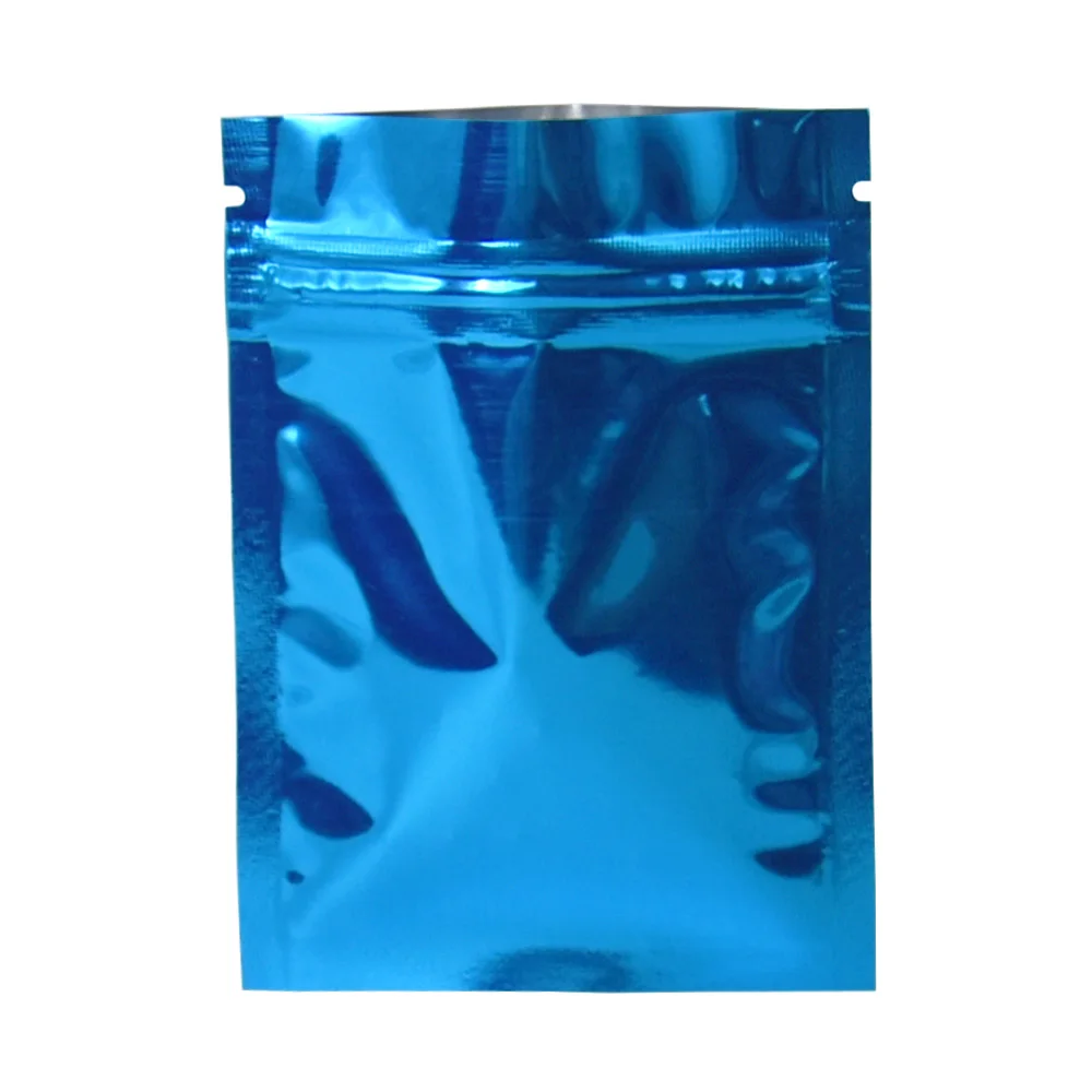 100 шт.лот Глянцевая сумка из майларовой фольги с застежкой-молнией, самозахватывающиеся перезаряжаемые многоразовые мешочки для еды, кофе, шоколада