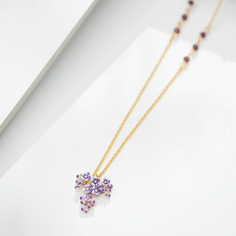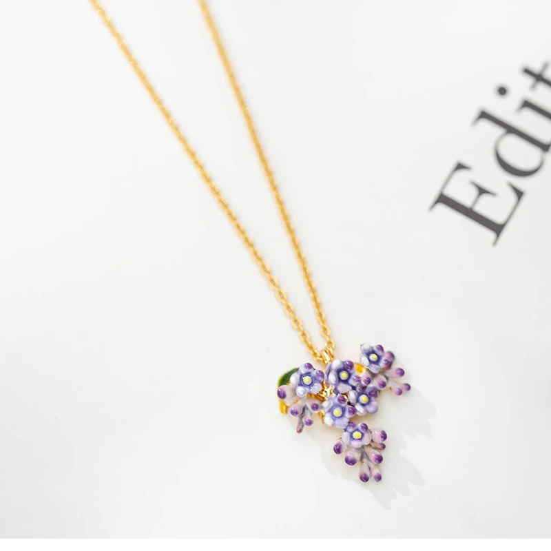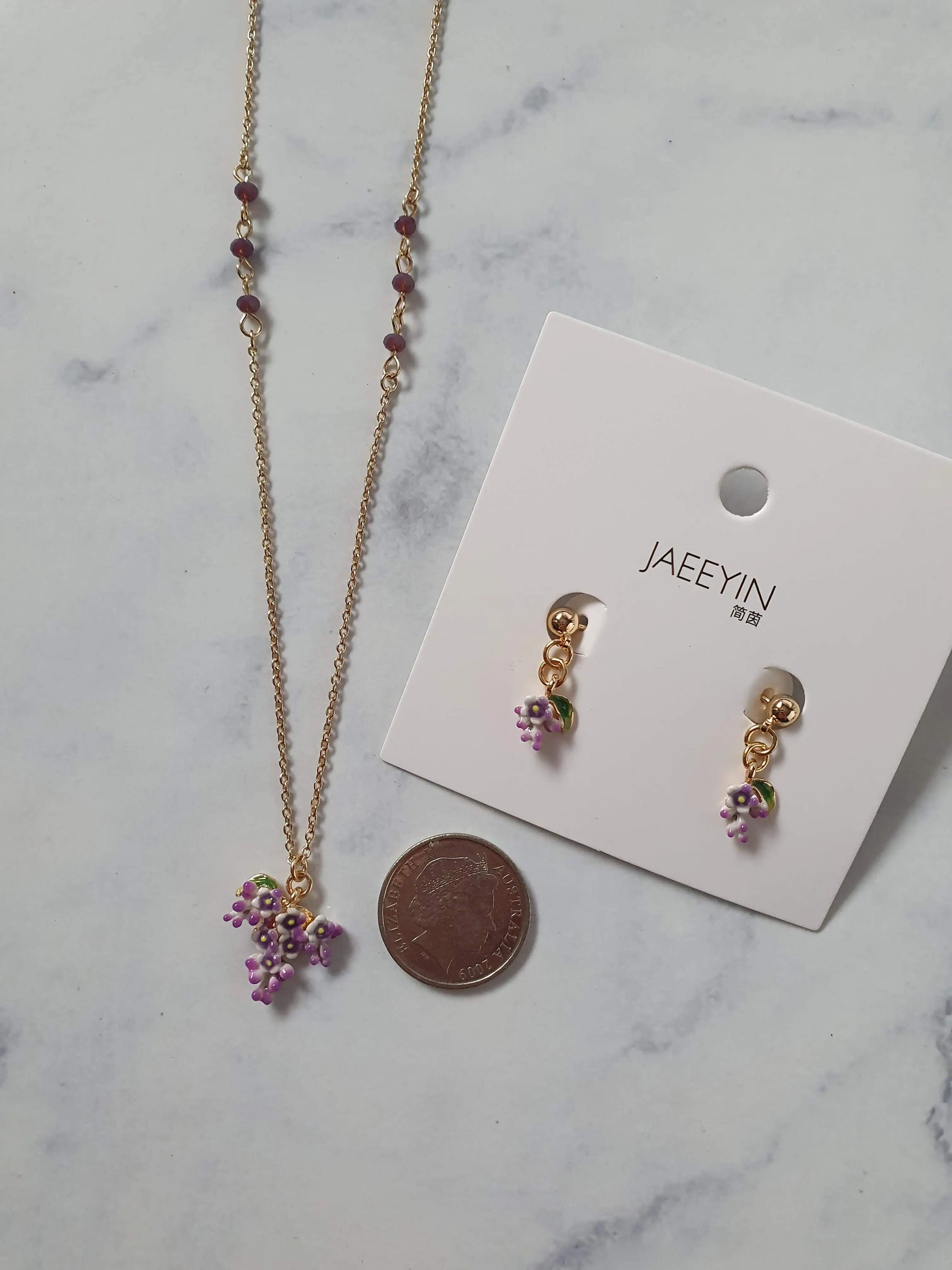 Jaeeyin 2021, модное ожерелье, серьги, нежная Глициния, латунь, Золотая эмаль, Новое поступление, фиолетовый цветок, подарок для женщин-подростков