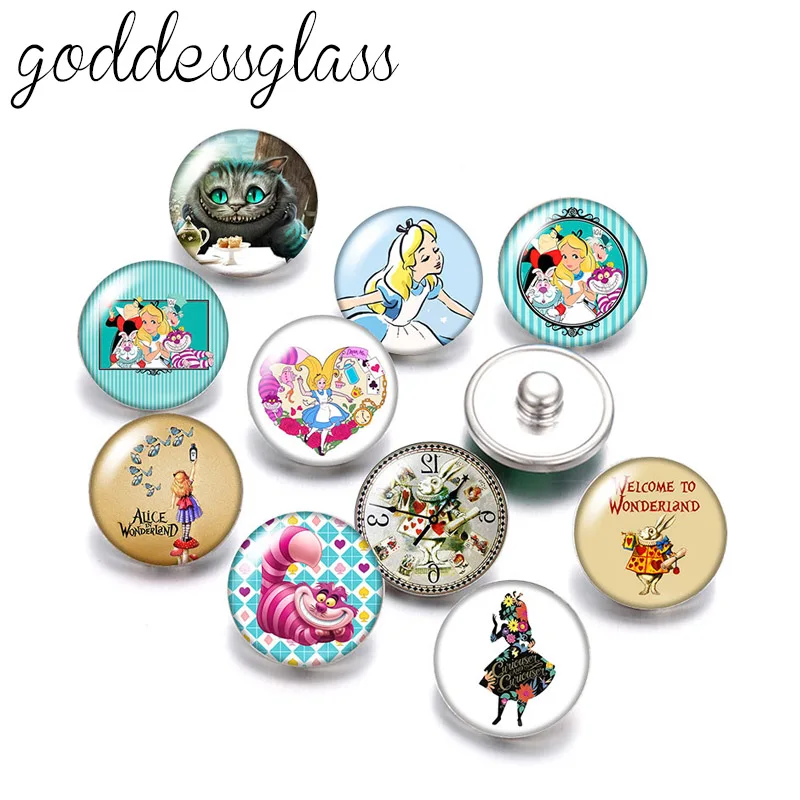 Disney Чеширский Кот из Алисы белый кролик 10 шт. Круглый Фото 18 мм кнопки для 18 мм Оснастки ожерелье, сделай сам, ювелирное изделие